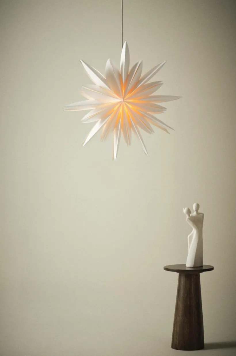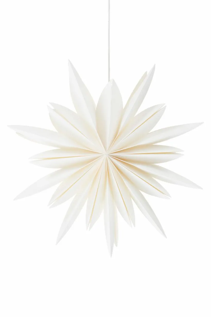 Julstjärna av papper, stor och med olika längd på uddarna. ARCTURUS lyser upp ditt fönster i vintermörkret. Lamphållare med vit plastsladd ingår. Viss montering krävs. Monteringsanvisning medföljer.