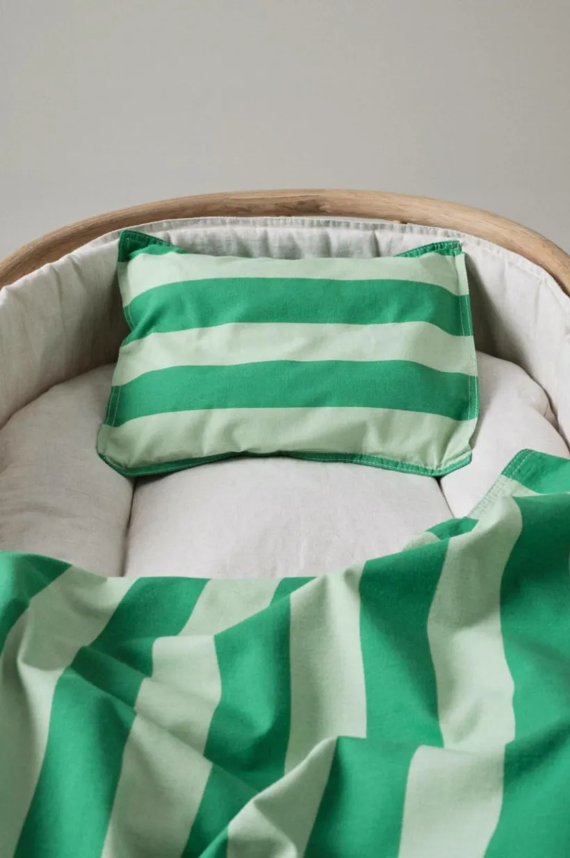 1-pack örngott av ekologisk bomull. Setet passar till spjälsäng. Blockrandigt mönstertryck är alltid fräscht, även till de minsta, och att sova i ekologisk bomull känns svalt och skönt mot huden.Örngottet är dessutom plaggtvättat vilket innebär att det tvättats efter sömnad och känslan blir extra mjuk och skön. Dubbelsöm runt om ger exklusiv känsla. Trådtäthet på 144 tc. (Trådtätheten talar om antalet trådar, thread counts, per kvadrattum i ett tyg. Ju högre trådtäthet desto högre kvalité).
