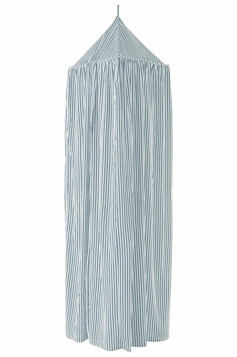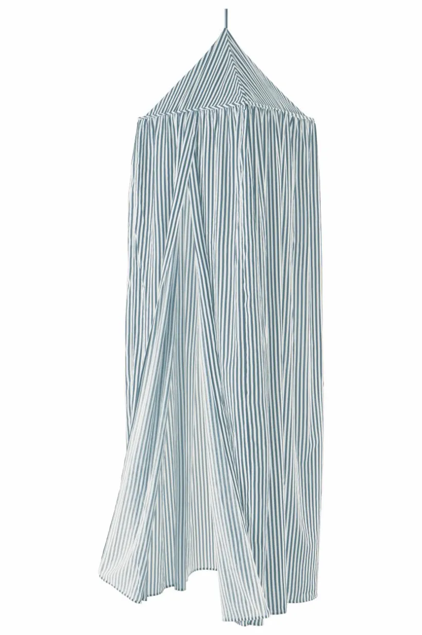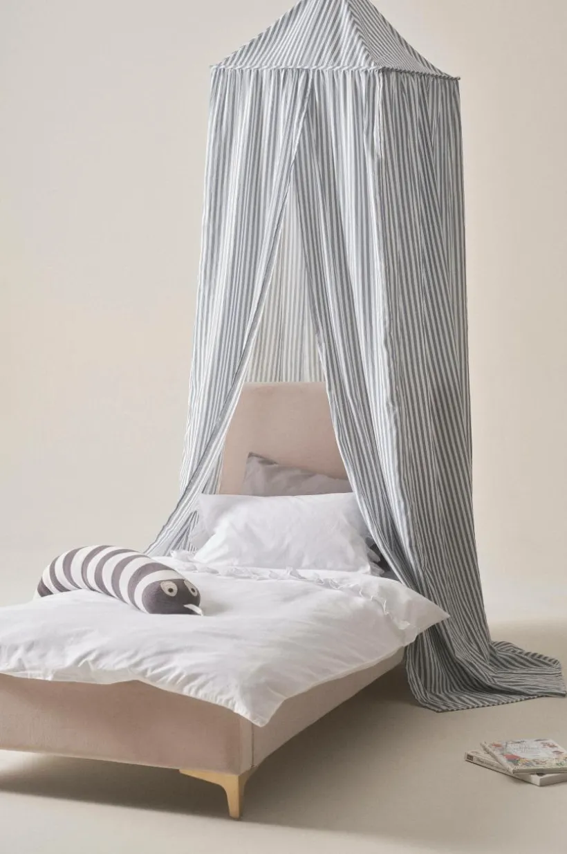 Sänghimmel i följsamt polyester- och bomullstyg med tryckt randigt mönster. Denna sänghimmel är kvadratisk upptill och öppen framtill. En sänghimmel över barnens säng skapar en ombonad atmosfär, det kan bli lite extra mysigt att gå och lägga sig. Mönsterbilden FRANNY finns i många olika delar så att du kan inreda barnkammaren med ett randigt tema.