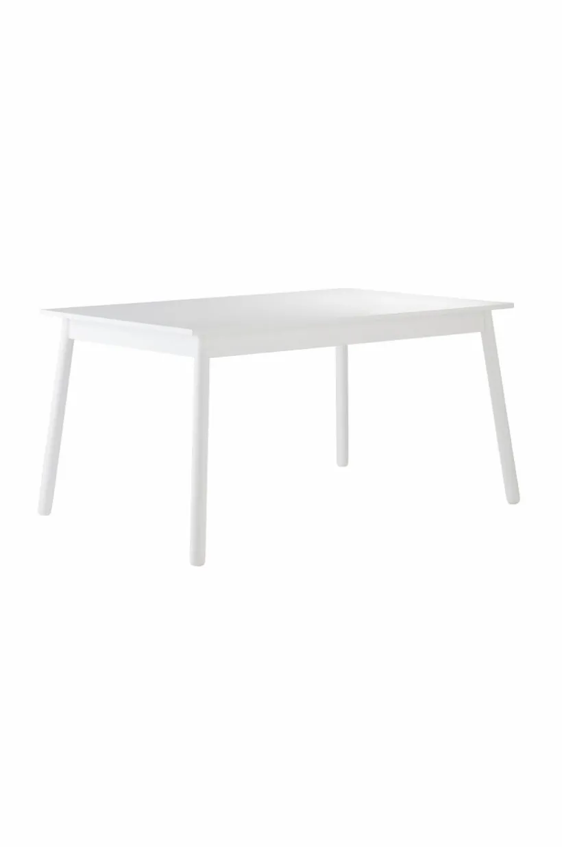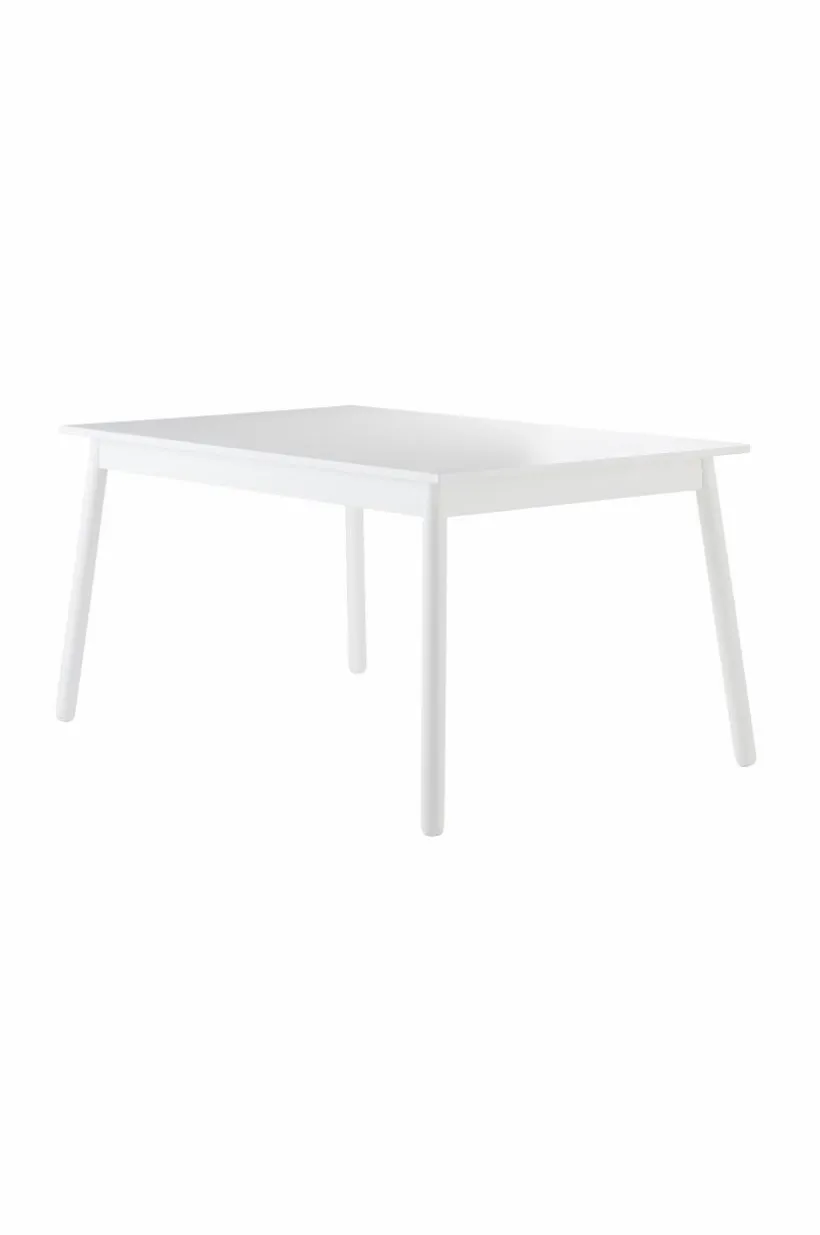 Rektangulärt, stilrent matbord med bordsskiva av lackad MDF och ben i lackad furu. KINNA är ett stilrent matbord i avskalad design. Bordsskivan med kantiga hörn matchas med två smala ben längs vardera kortända. Viss montering krävs. Monteringsanvisning medföljer.