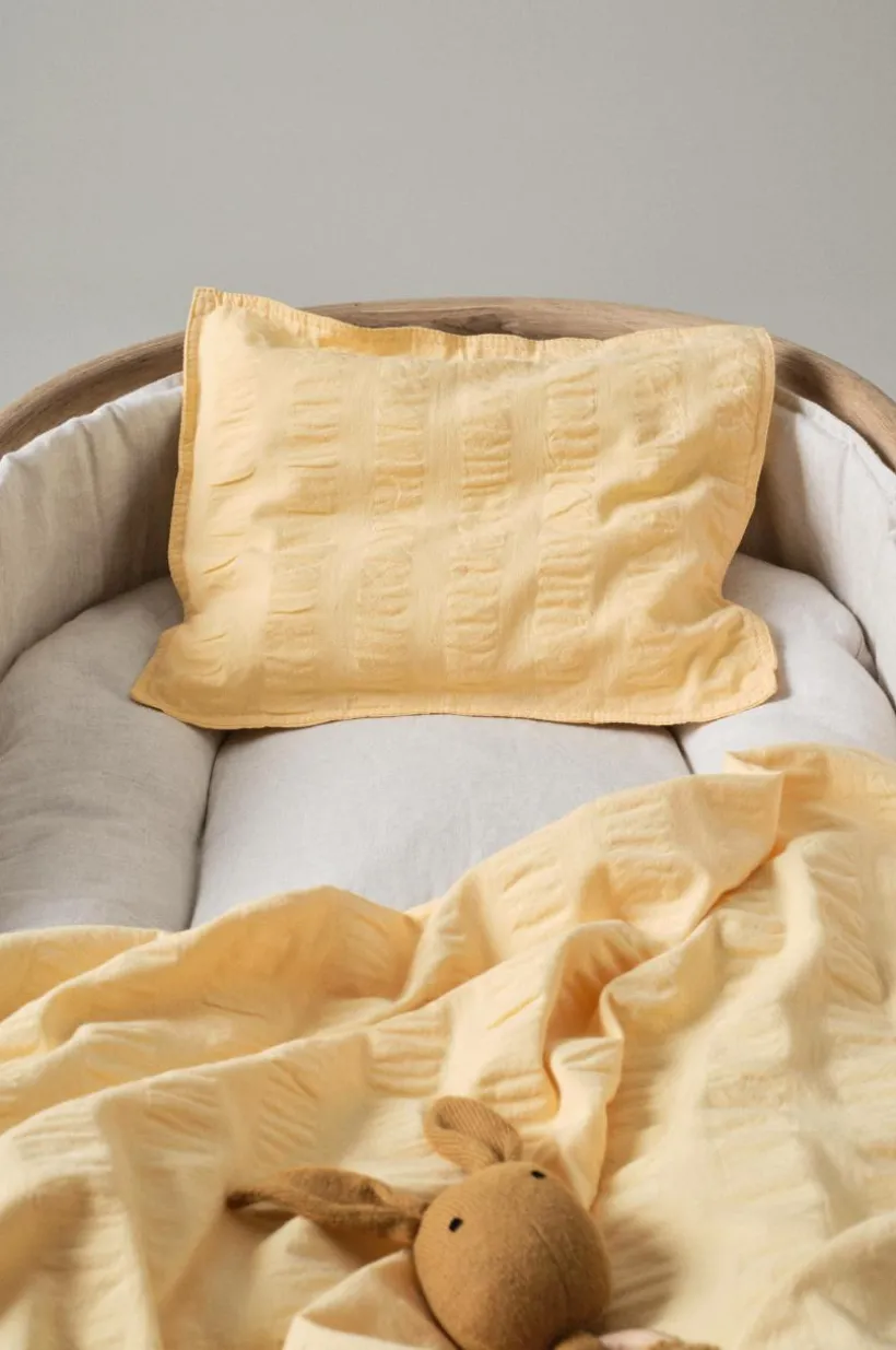 1-pack örngott i skön bäckebölja av certifierad, ekologisk bomull. Bäckebölja är en luftig kvalité och det bubbliga tyget känns svalt och andas behagligt. Serien LOLO är enfärgad och samtidigt randig, slättvävt tyg varvas med ränder i bäckebölja. Tyget är garnfärgat och tvättat för att få en mjukare känsla. Det lilla örngottet passar bra i barnvagnen och vaggan. Trådtäthet på 120 tc. (Trådtätheten talar om antalet trådar, thread counts, per kvadrattum i ett tyg. Ju högre trådtäthet desto högre kvalité.)