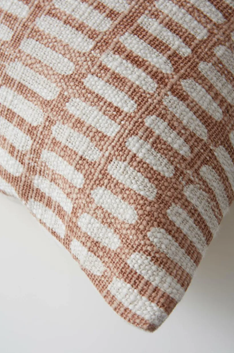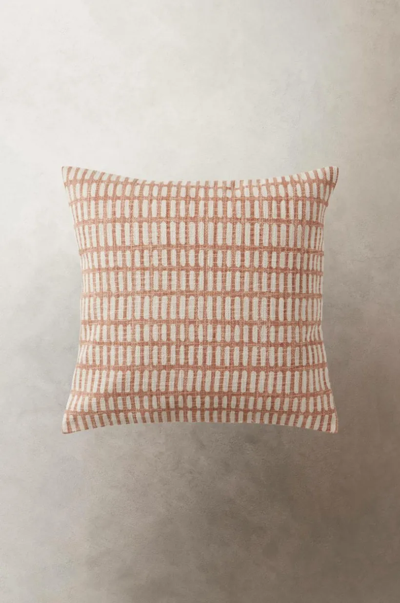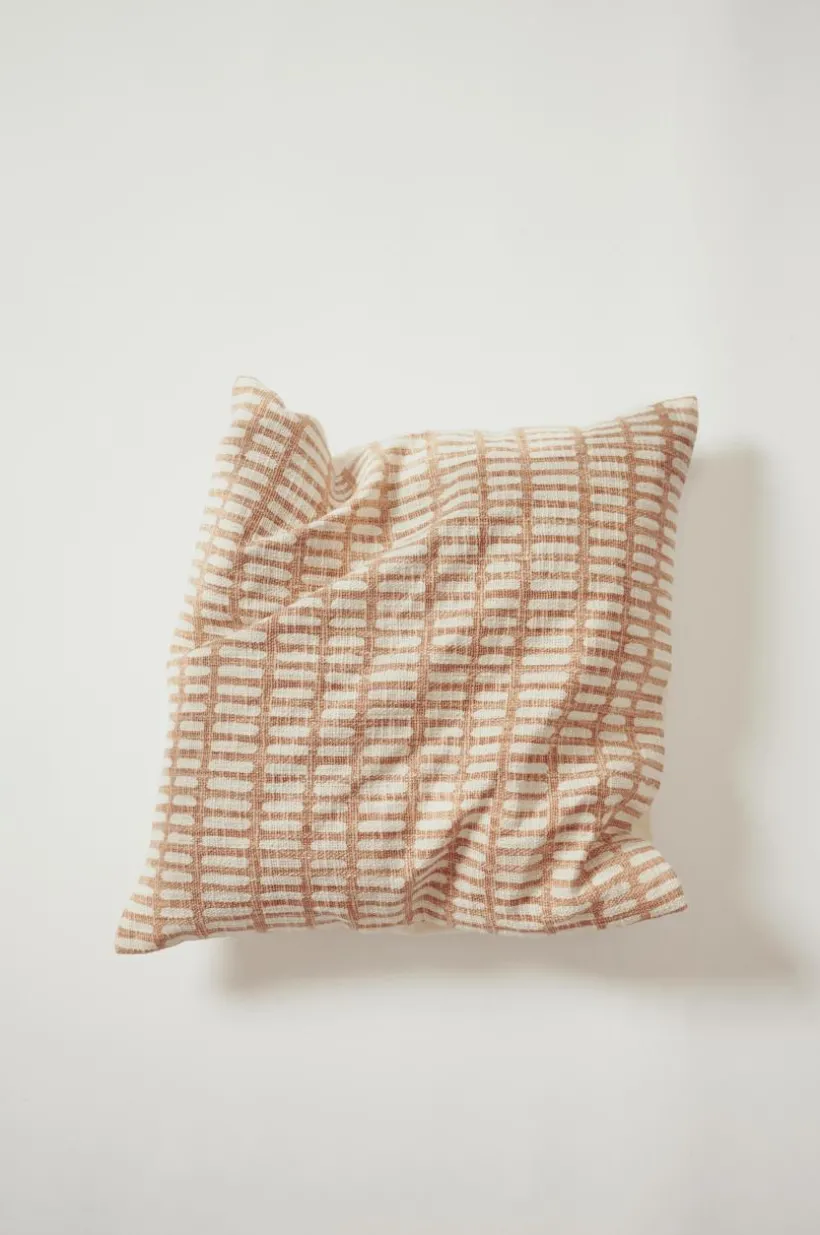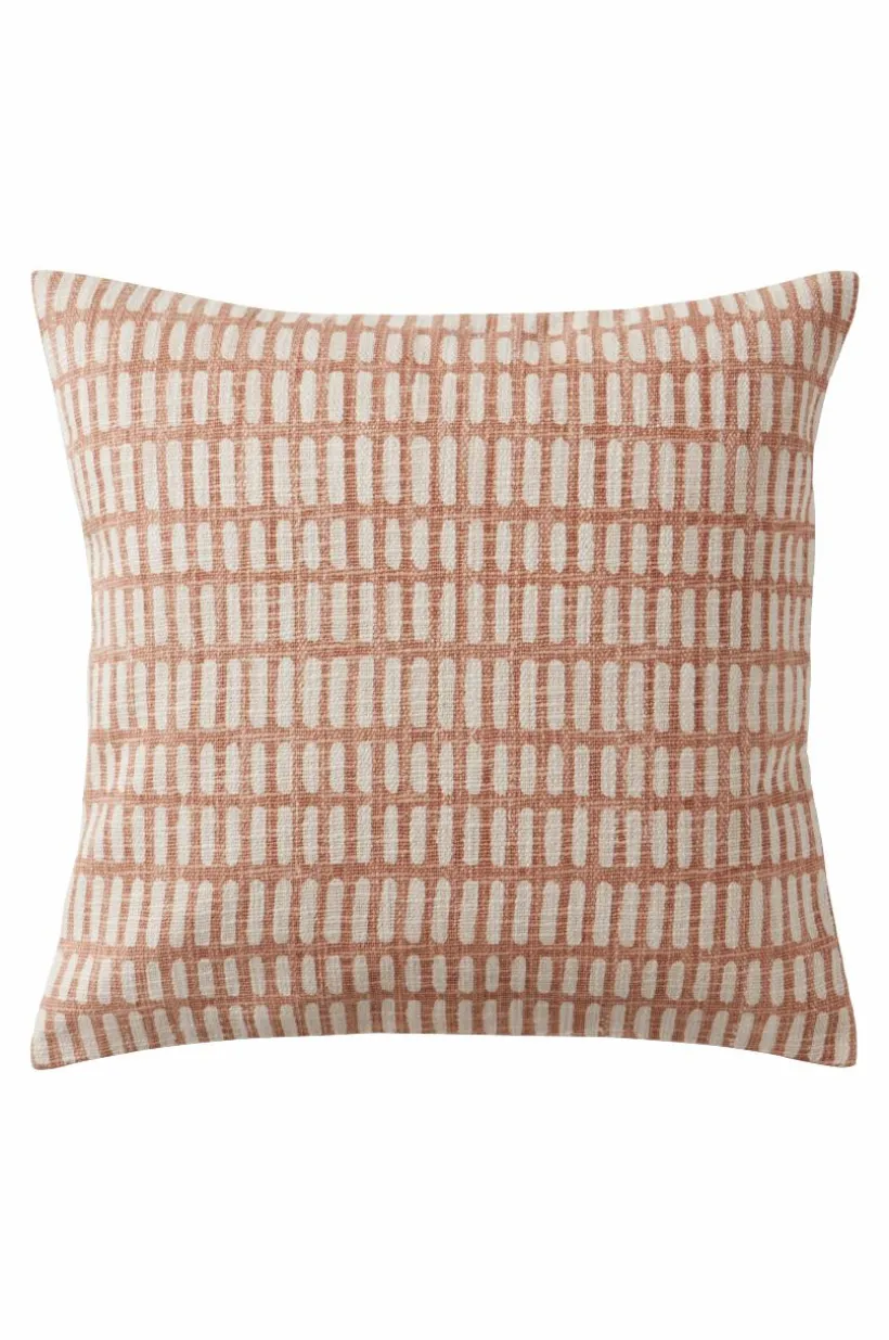 1-pack kuddfodral av bomull. Kuddfodralet har lite grövre, vävd framsida med slubeffekt och fint, tryckt mönster. Baksidan är naturfärgad med lätt melerad effekt och dold dragkedja. Framsidan är fodrad med samma tyg som är på kuddens baksida.