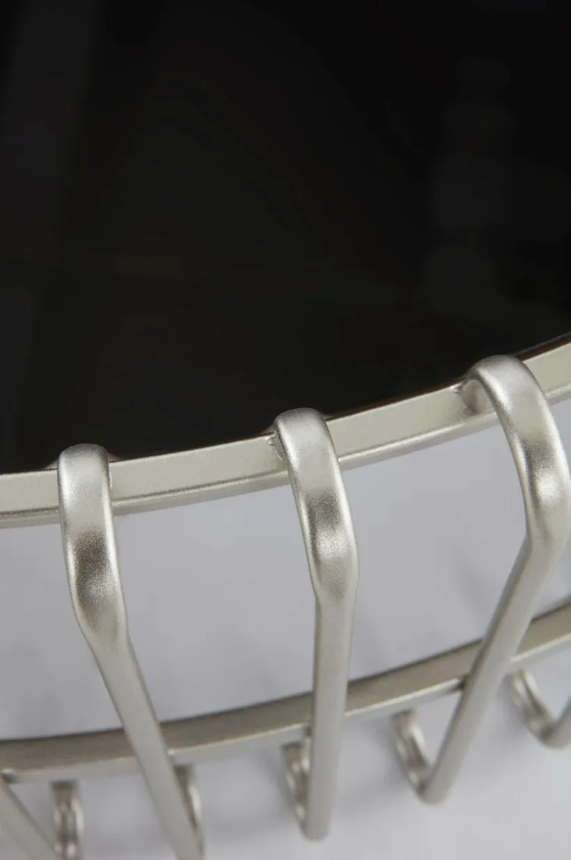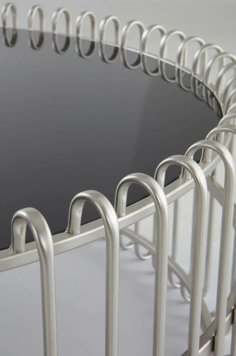 Runt soffbord med bordsskiva av svart, tempererat glas som är nedsänkt i ett effektfullt underrede av stål med silverfärgad beläggning. Den låga höjden på bordet ger skön loungekänsla vid soffan. Viss montering krävs. Monteringsanvisning medföljer.