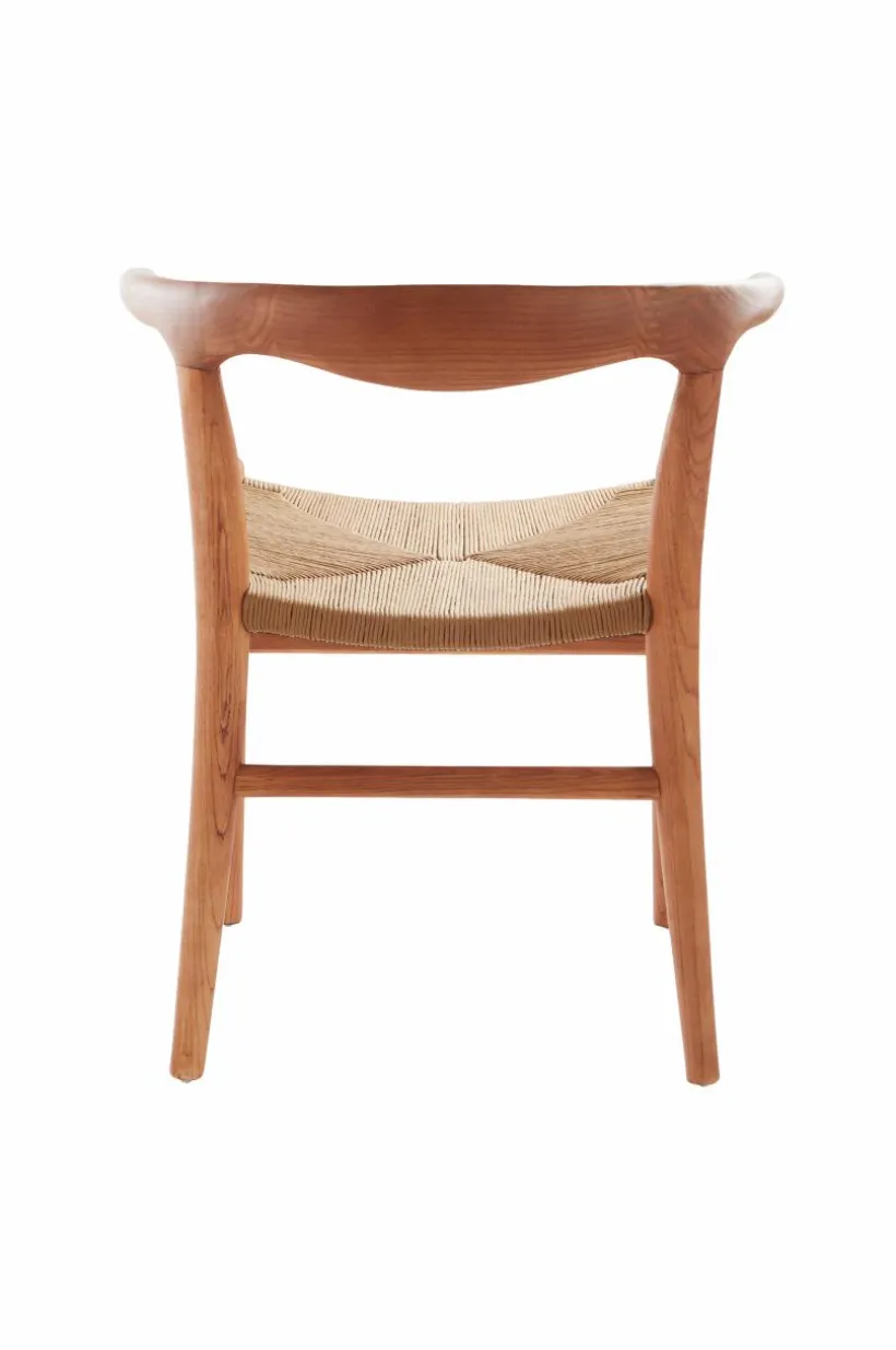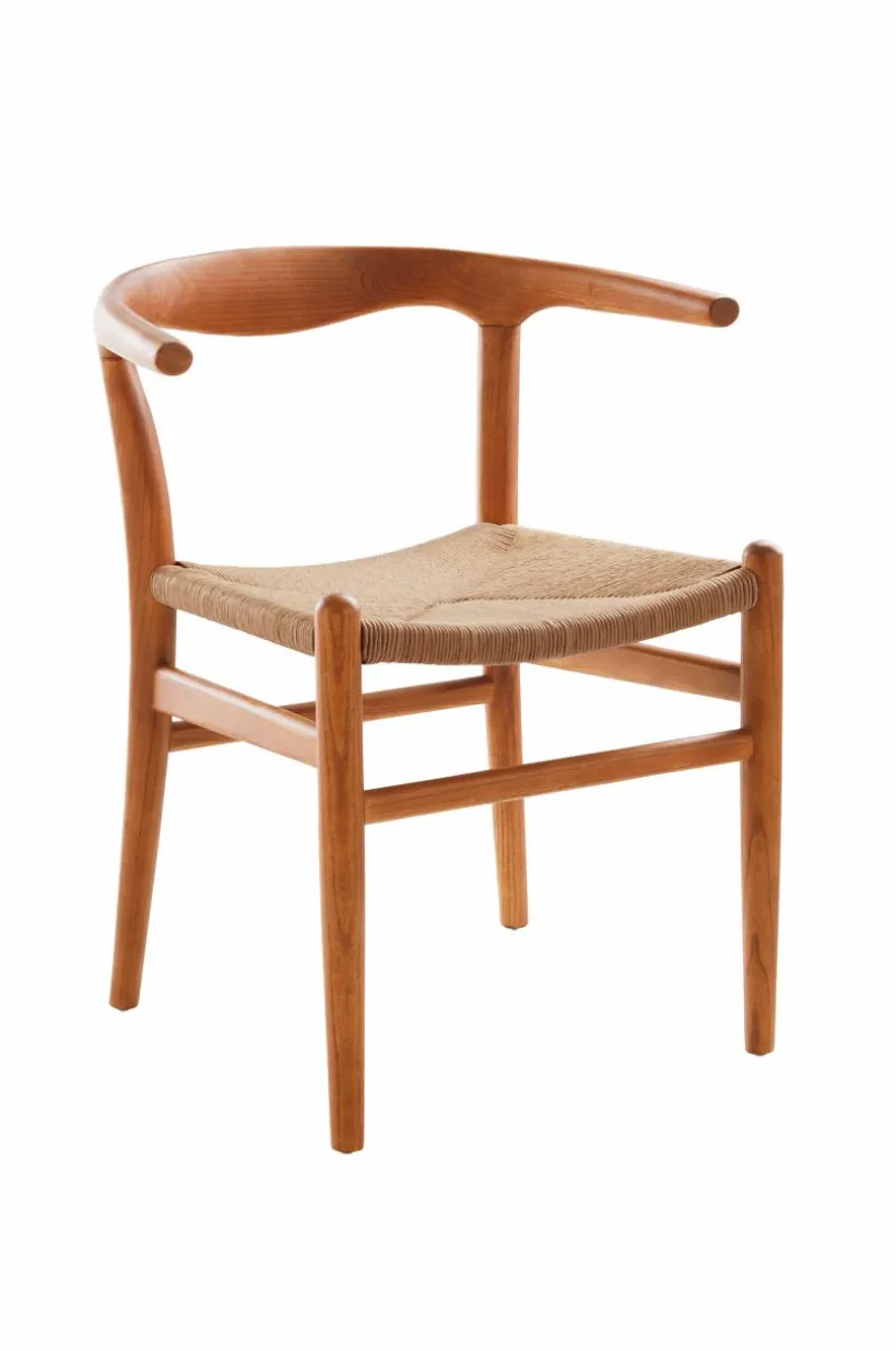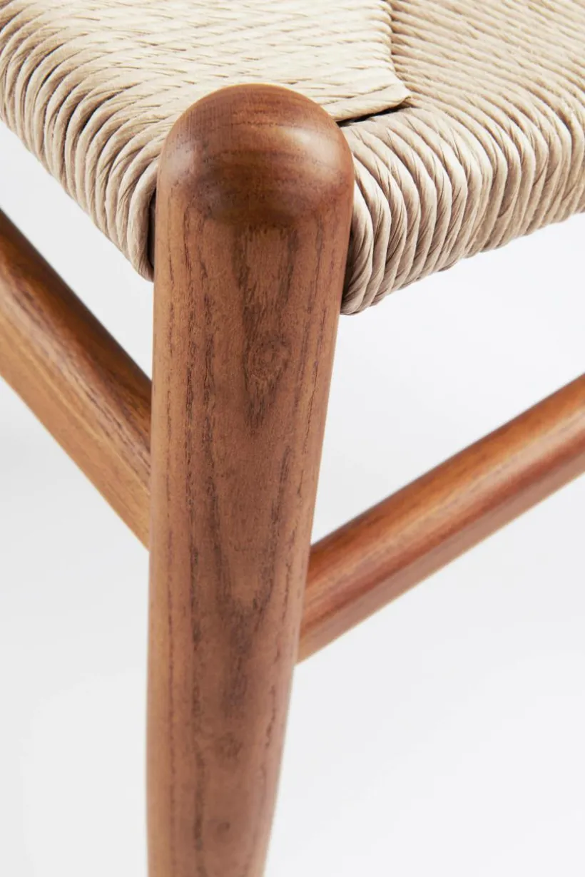 Stol av massiv alm. Träfärgad, svart/natur och valnötsfinish/natur är ytbehandlade med lack. Vitsåpad alm med ljus och svart sits har såpad yta utan lack. Sits av papperssnöre. Robust alm i kombination med sitsen av papperssnöre blir en vacker kontrast och ger bra sittkomfort.