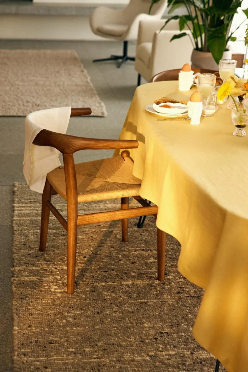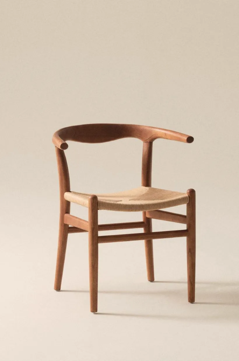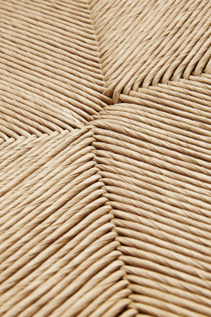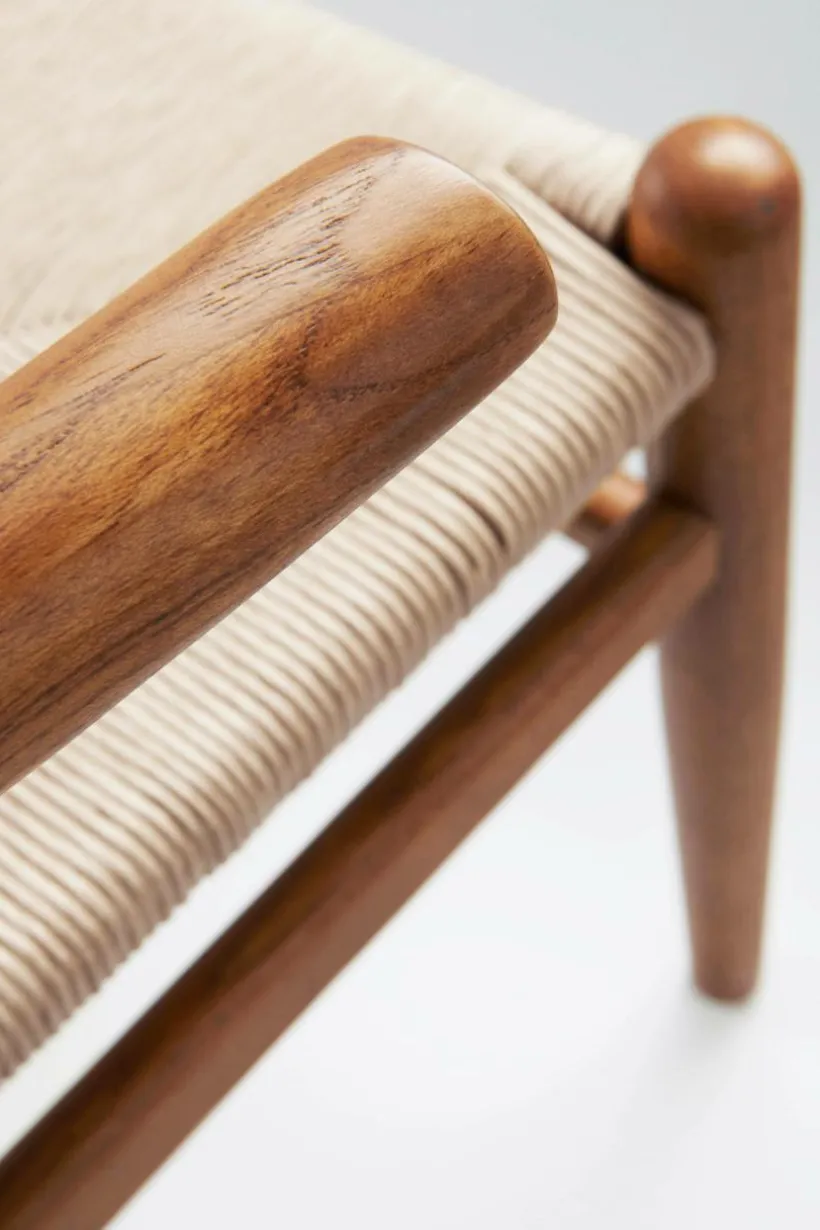 Stol av massiv alm. Träfärgad, svart/natur och valnötsfinish/natur är ytbehandlade med lack. Vitsåpad alm med ljus och svart sits har såpad yta utan lack. Sits av papperssnöre. Robust alm i kombination med sitsen av papperssnöre blir en vacker kontrast och ger bra sittkomfort.