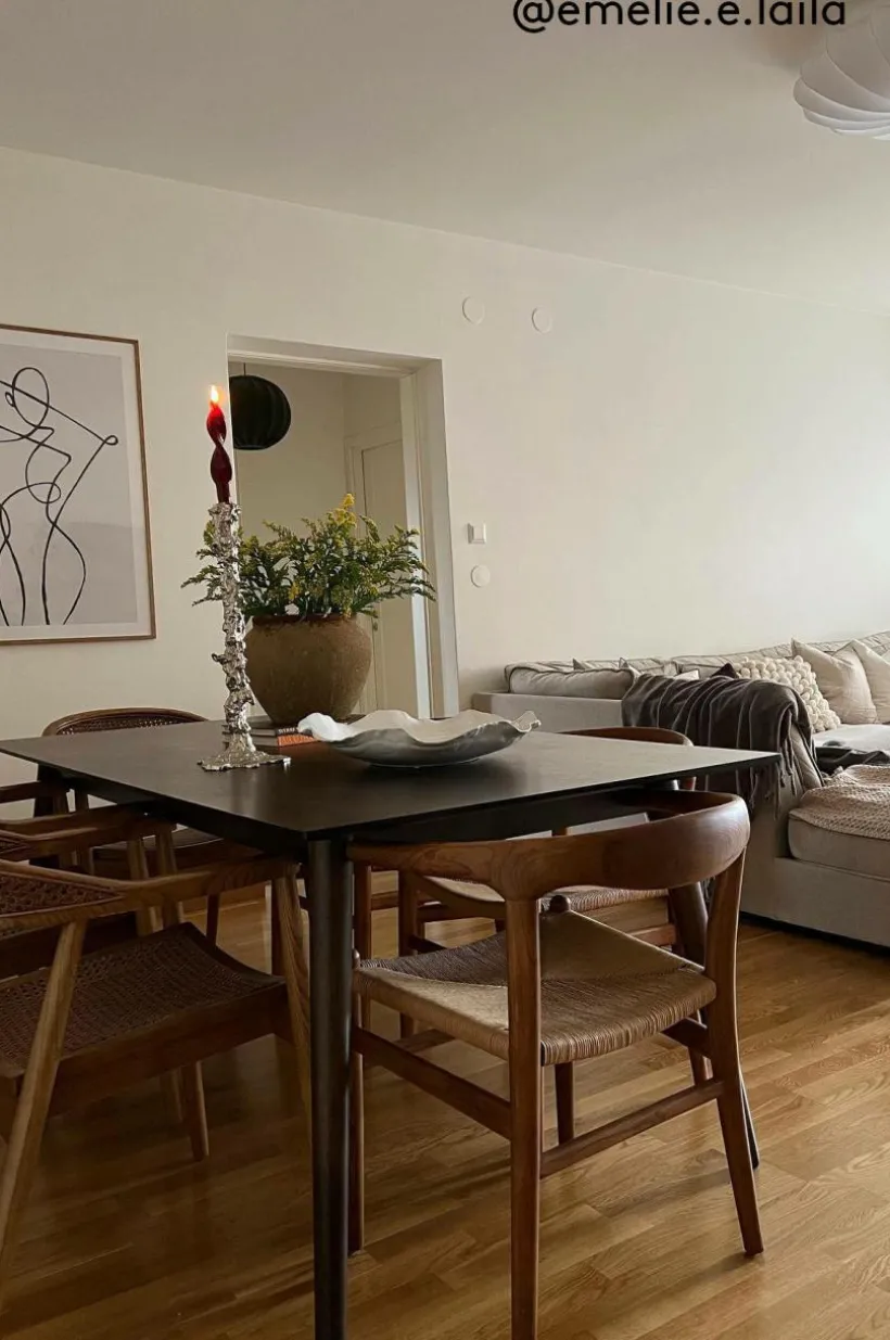 Tips/råd: Du behöver inte ha likadana stolar runt ett bord. Udda är snyggt och praktiskt när ni blir många runt matbordet.