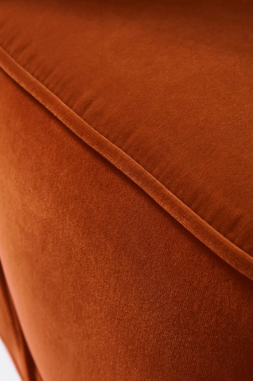 Inget vardagsrum är komplett utan en fåtölj i sammet. RICHMONDS skönhet, inbjudande runda former och fantastisk sittkomfort blir snabbt en favorit i ditt hem. Fåtöljen är lika snygg i grupp runt ett bord som solitär i ett sovrum. RICHMOND har en smakfull dos av retro kombinerat med modern touch, ett bra val. RICHMOND fåtölj har en stabil stomme av furuträ och playwood med god sittkomfort tack vare sin fantastiska uppbyggnad av kallskum, zickzackfjädring, resårband samt den sköna polyesterstoppningen. Sammetstyget är av 90% bomull, 10% polyester.