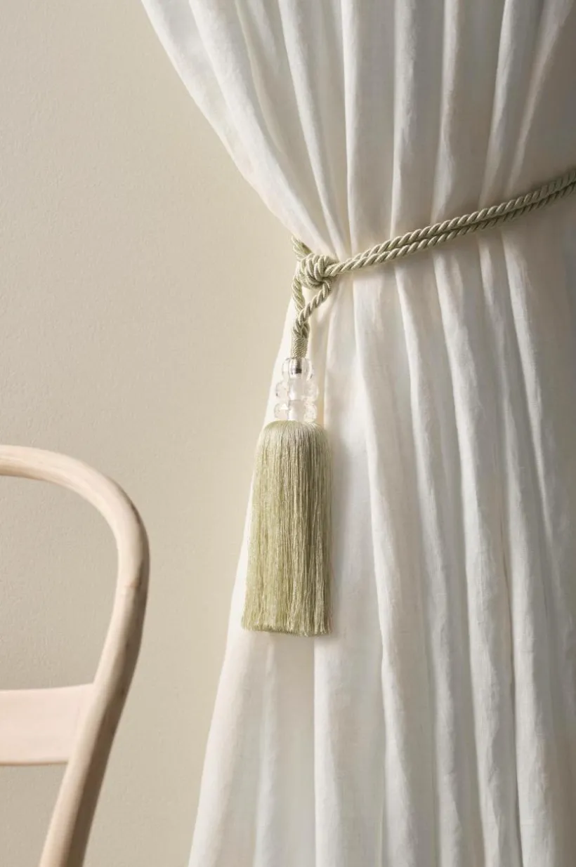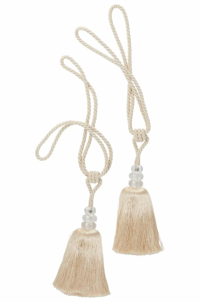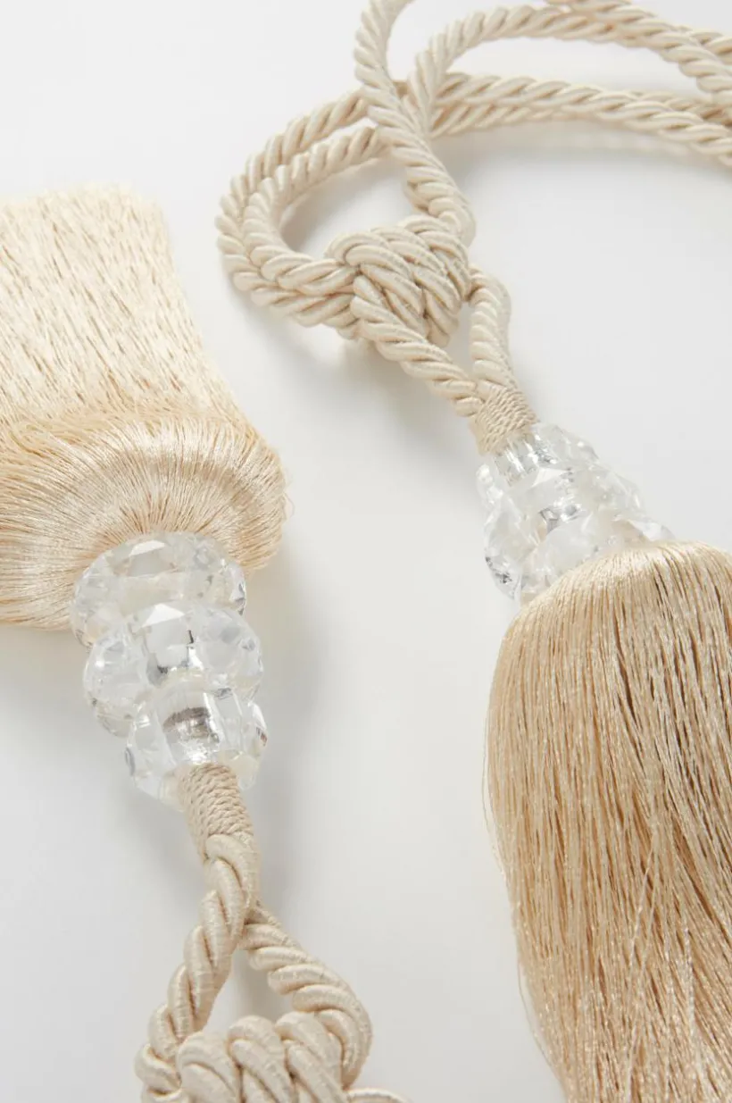 2-pack omtag av polyester. SENNA har en härlig tofs på varje omtag med dekorativ fäste med transparenta pärlor akrylglas.
