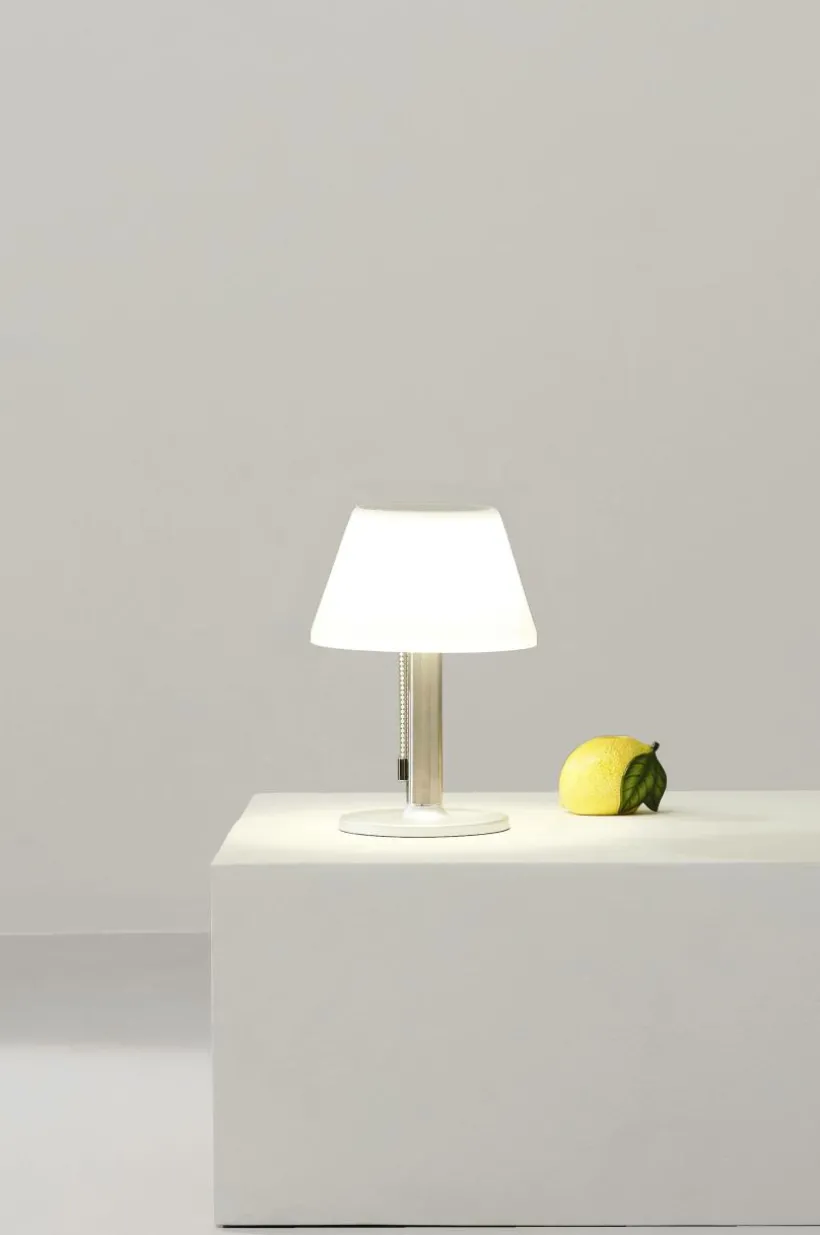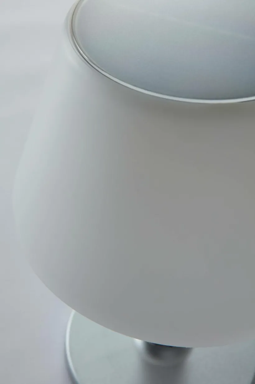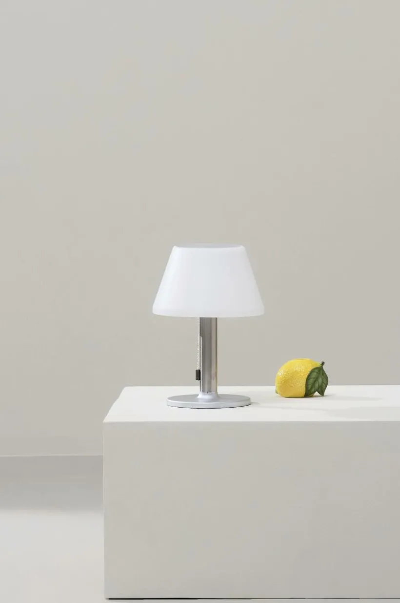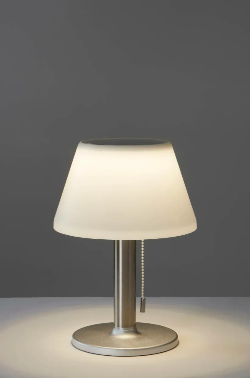 Solcellsdriven bordslampa som passar lika bra inomhus och utomhus. Lampan har tre Lumen lägen 10/50/200Lm och sprider ett varmvitt ljus. Du tänder lampan genom att först sätta på brytaren under lampskärmen, sedan styr du styrkan på Lumen med den hängande brytaren. Drivs med 1 st uppladdningsbart Li-Ion batteri. Batterier medföljer.