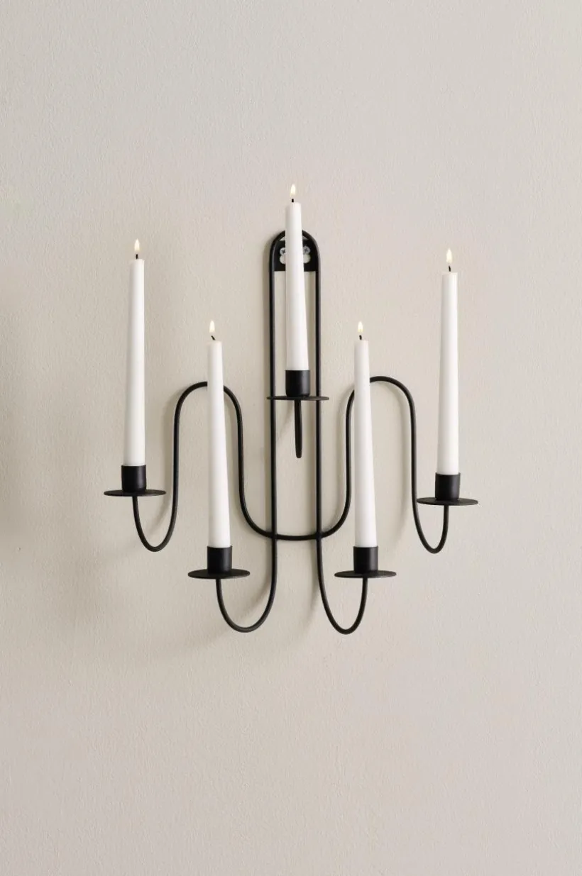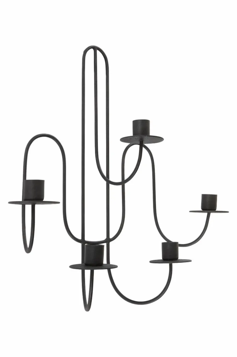 Väggljusstaken WINDSOR har en elegant och minimalistisk design som är perfekt för att skapa ett mysigt ljussken. Tillverkad av järn med en svart matt yta, kombinerar denna ljushållare både elegans och mysighet. Med plats för fem ljus är den idealisk för kök, hallar, sovrum eller vardagsrum, och dess enkla men sofistikerade form förhöjer varje interiör och ger en charmig estetik.