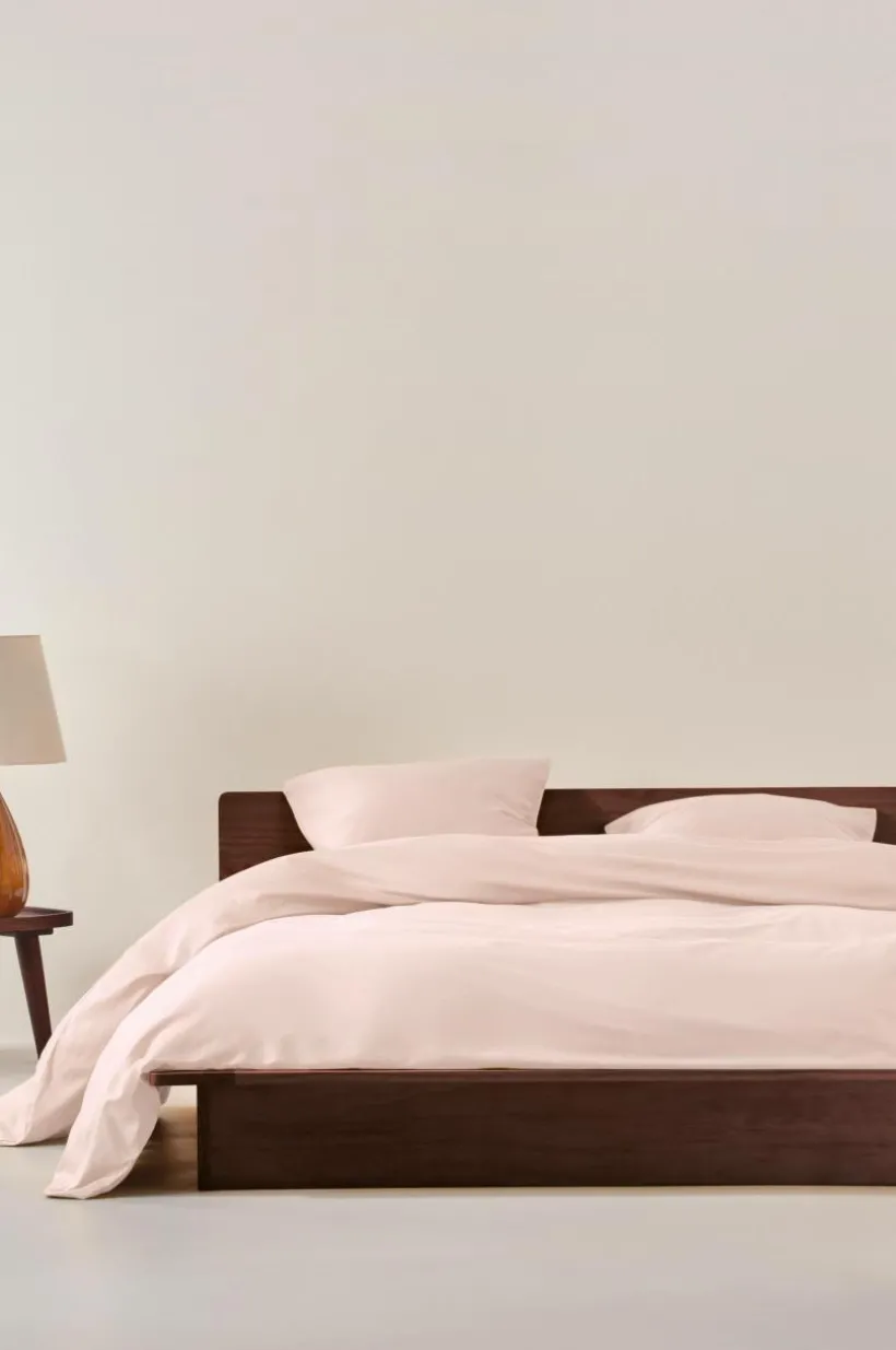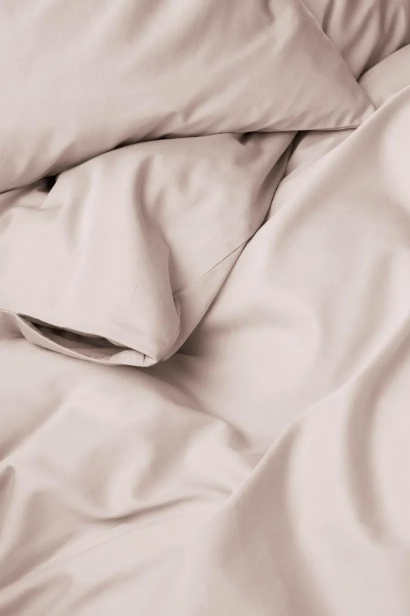 Enfärgat påslakanset i tre delar, ett extra brett påslakan och två örngott i exklusiv satin av ekologisk bomull. Satin är en vävteknik som ger ett underbart slätt, mjukt och lent tyg. Bomull som vävs med denna teknik ger ett tyg med fin lyster och lyxig känsla.