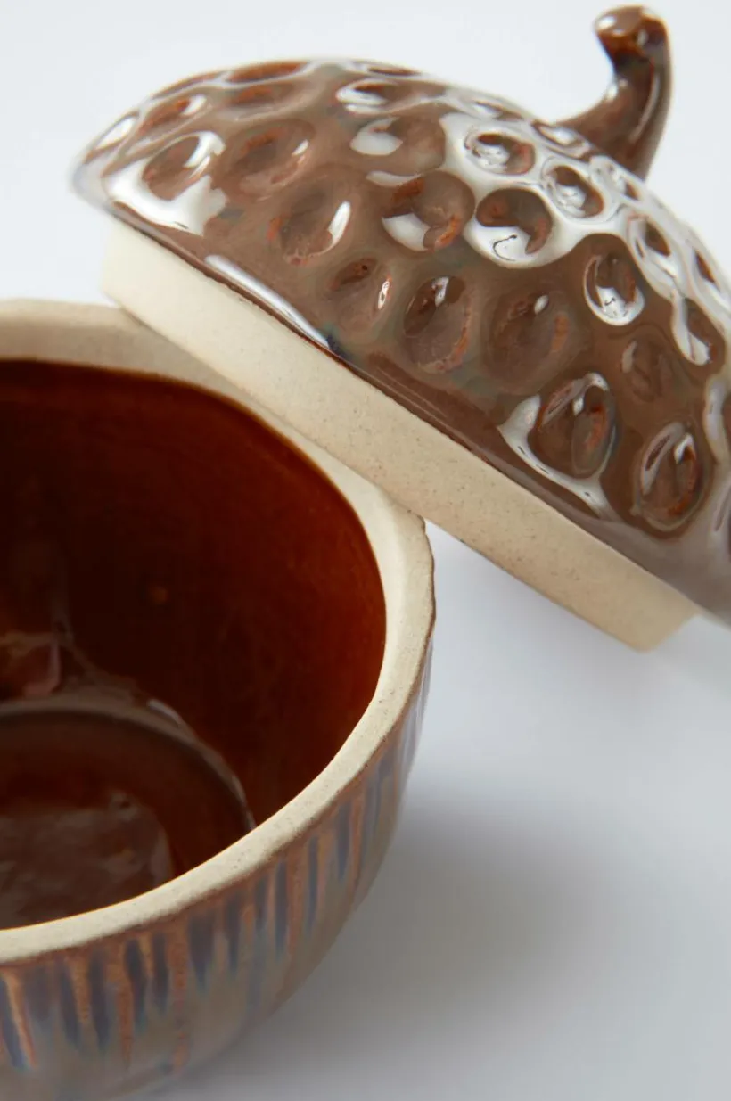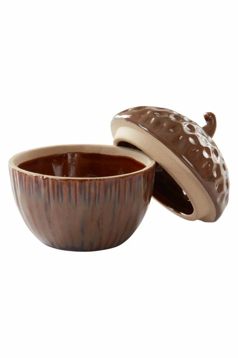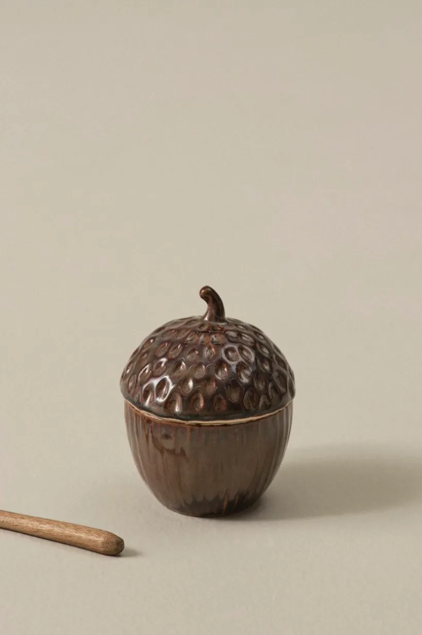 Handgjord dekorationsskål med lock, i formen av ett ekollon. ACORN är av stengods med glansig glasyr. Det fina hantverket gör varje dekorationsskål unik.