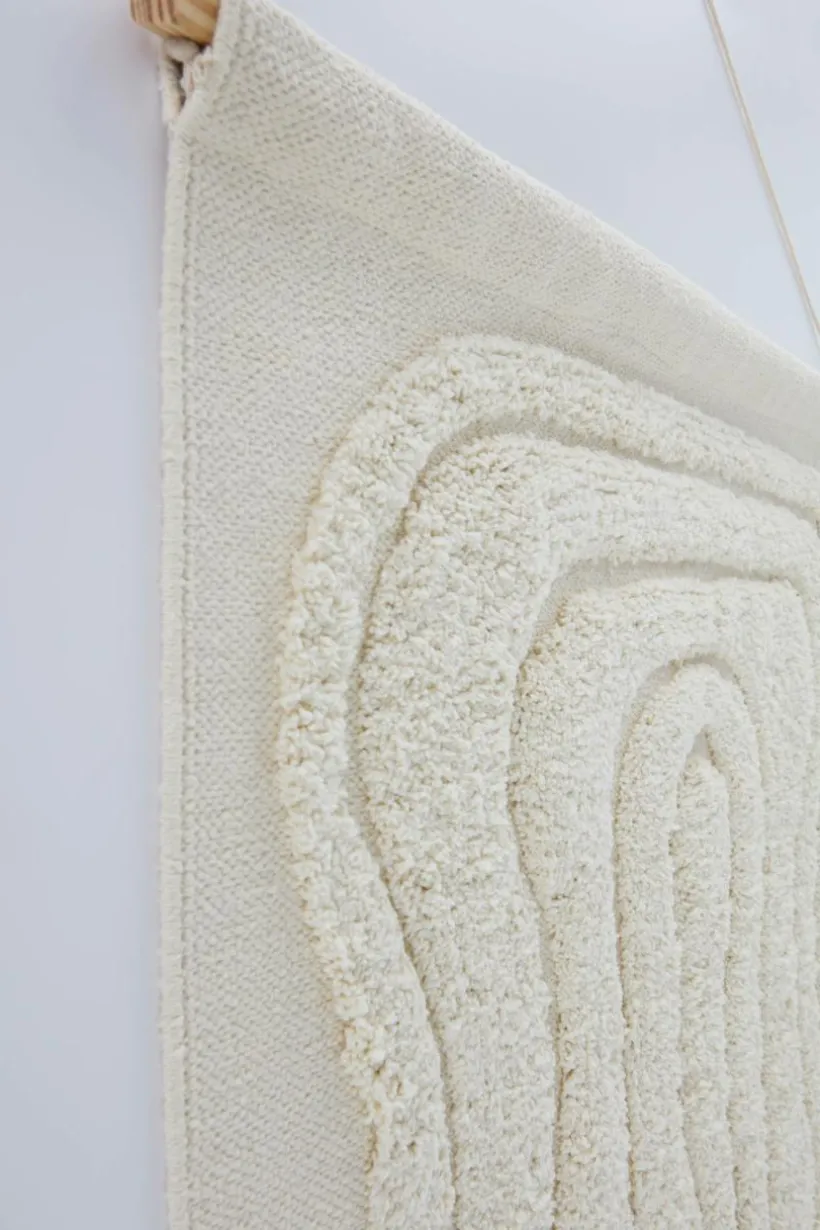 ADELE är en väggdekoration som fängslar med sin charm. Den är tillverkad av enfärgat garn och har ett tuftat mönster som skapar en subtil textur. Den långa fransen ger en lyxig känsla. Träpinnen och snöret gör upphängningen enkel. ADELE kommer att tillföra värme och personlighet till ditt vardagsrum.