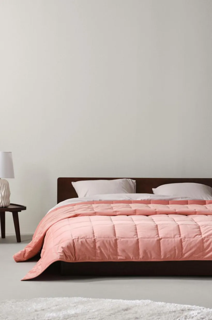 Enfärgat överkast av polyester med diskret rutquiltat mönster. Tyget har mjuk yta och lätt vaddering som hålls på plats av quiltningen. Obs! Kuddfodral medföljer ej, köps separat.