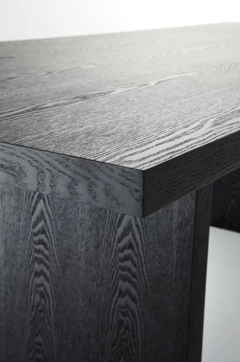 Storlek: Höjd 74 cm, bordsskiva 90×270 cm. Avstånd mellan benen 180 cm. Tjocklek ben 5 cm. Tjocklek bordsskiva 4 cm.