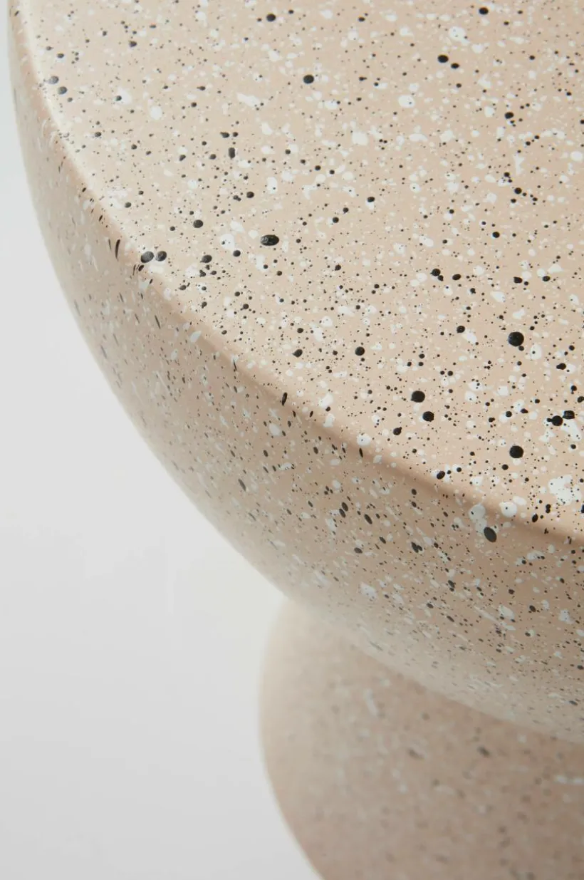 BALIS är ett litet sidobord av järn med terrazzoinspirerat stänkmönster som skapar härlig retrokänsla. Sidobordet är pulverlackerad med matt yta och det är ihåligt för att bli lätt och smidigt att hantera. BALIS kan du placera både i vardagsrummet och i barnkammaren, bordet känner inga gränser.