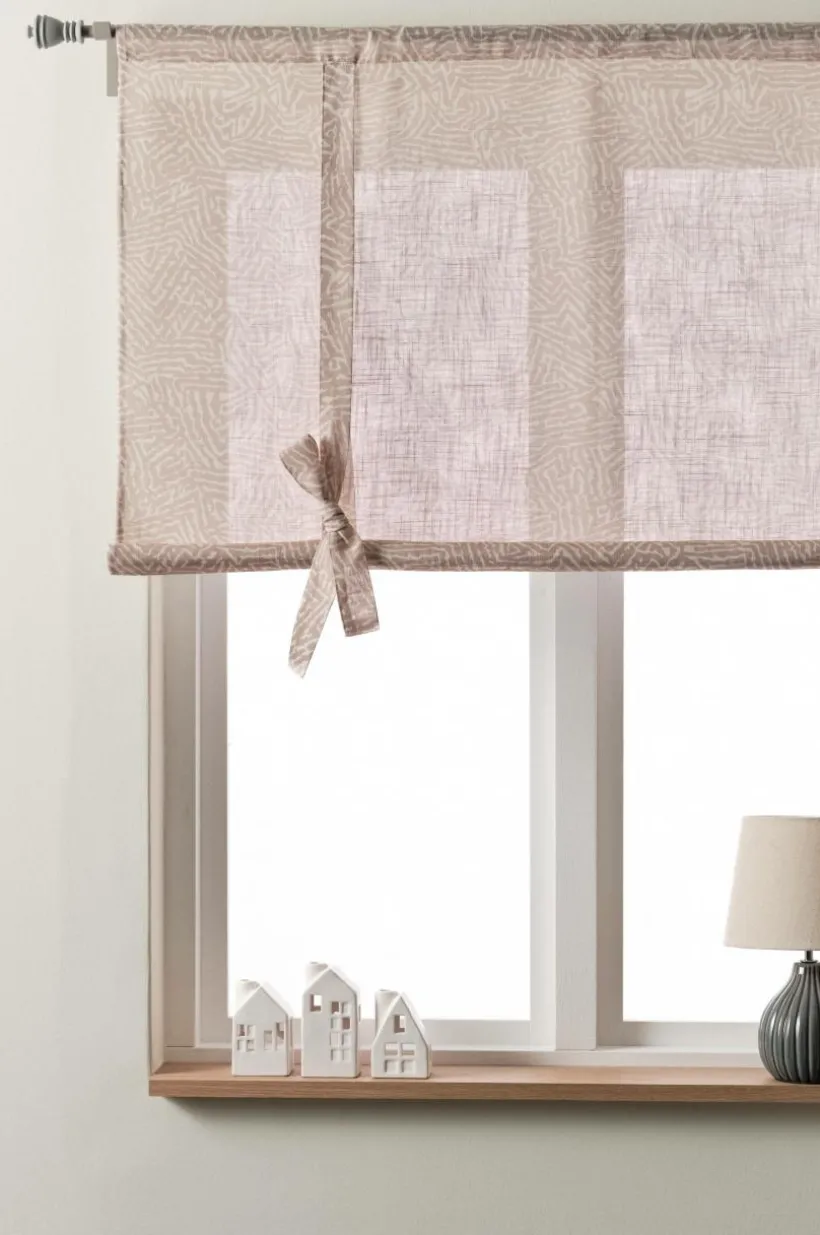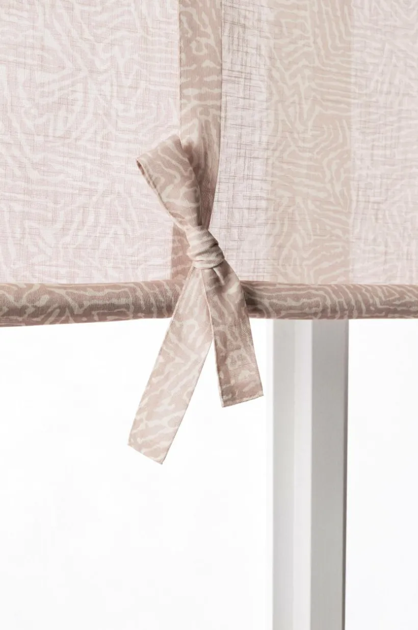 Roll up-gardin i mönstertryckt polyester som är snyggt glesvävd och lite skirare. Det läckra mönstret, som associerar till naturen på många sätt, i kombination med en lätt och smidig kvalité ger ditt fönster skön karaktär. Hängs på vanlig gardinstång. Höjden regleras med knytband.
