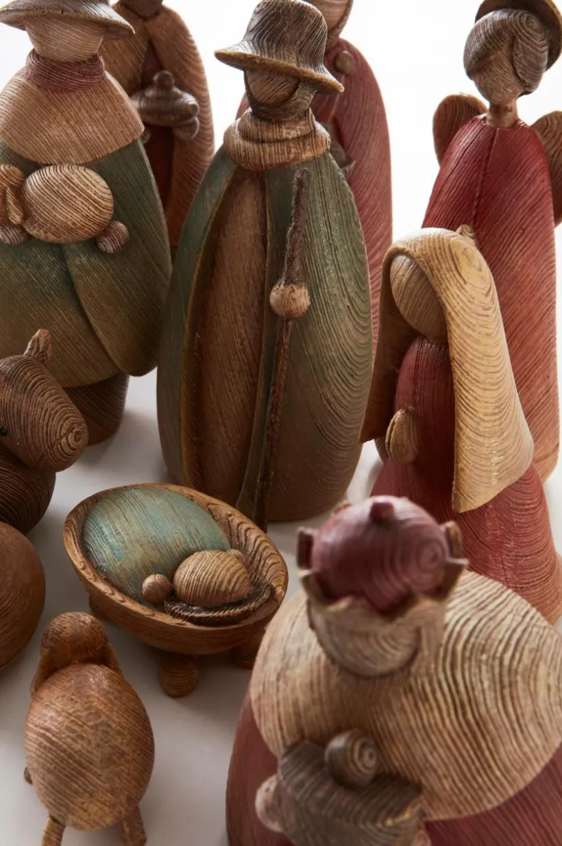 Klassisk julkrubba av polyresin med trälook. Julkrubban innehåller fina figurer som du placerar som du själv vill. Den består av Josef, Maria, Jesusbarnet, ängel, de tre vise männen, en herde, en åsna, en oxe och ett får.