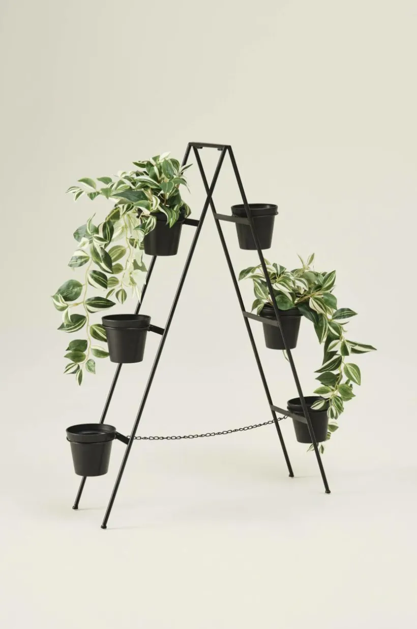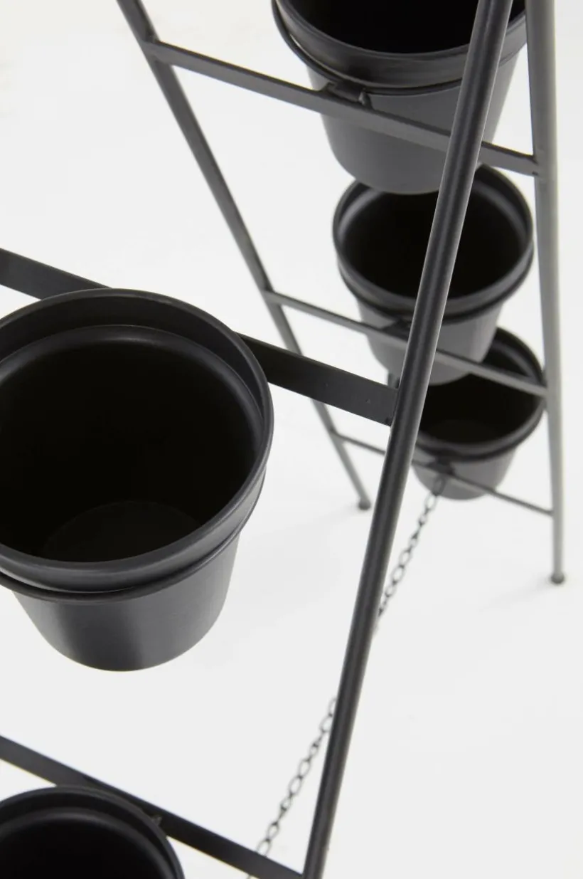 BASIL är en handgjord blomställning av järn med sex blomkrukor. Ställningen är hopvikbar och har en kedja nedtill. BASIL kan stå både utomhus och inomhus. Tänk på att järn får patina och rostar över tid. Blir det en skråma i lacken påskyndas processen.