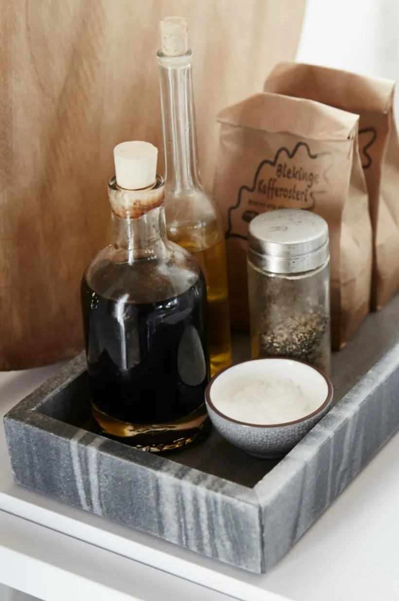 Samla ihop och skapa ordning på diskbänk, badrum eller soffbord med ett lyxigt marmorfat.