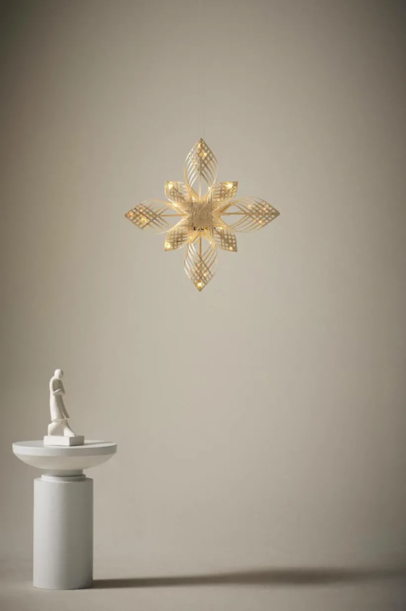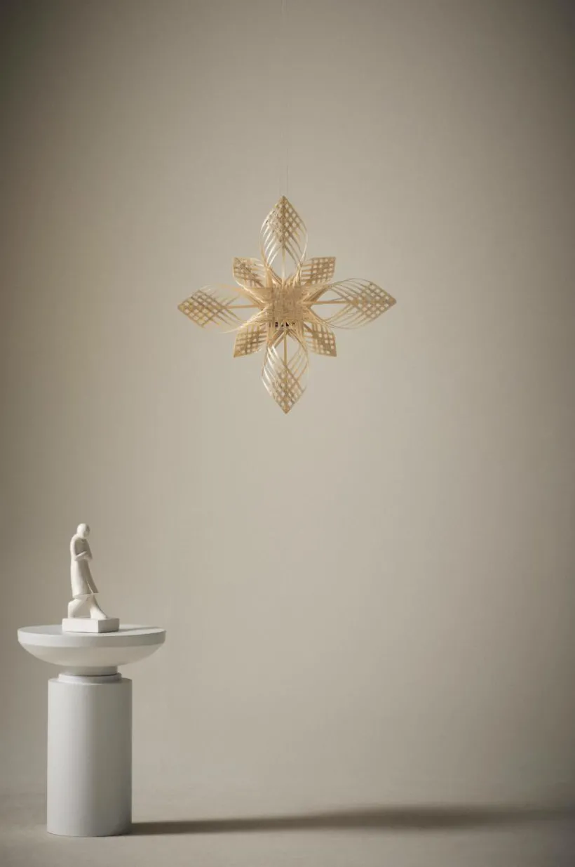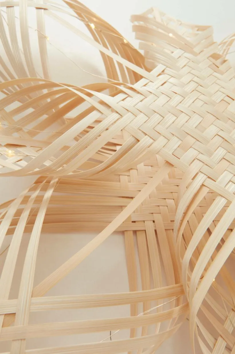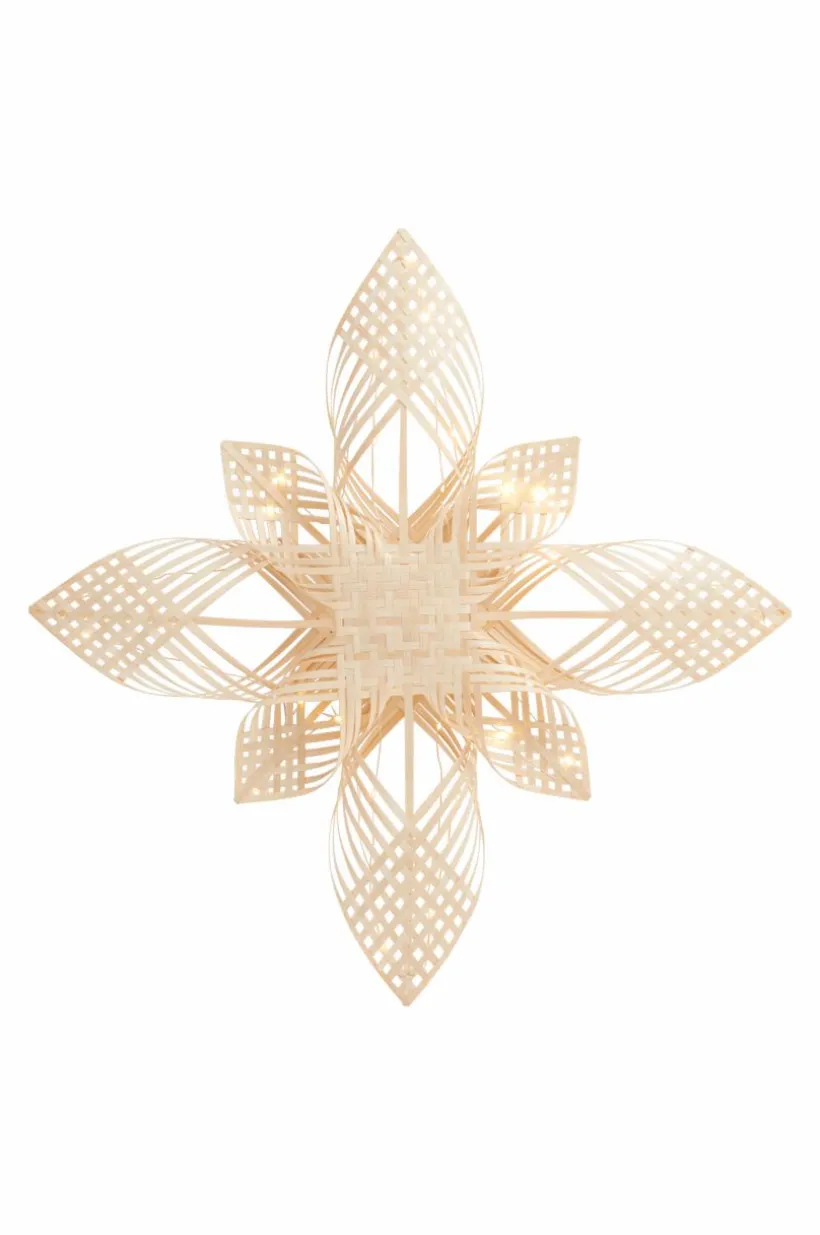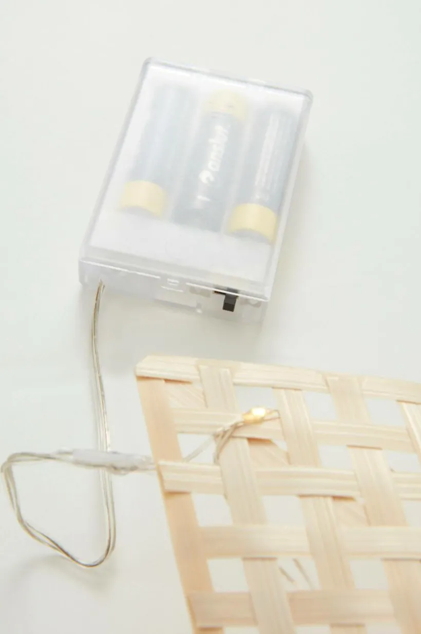 Handgjord julstjärna av bambu med 25 små LED-lampor som lyser fint. Drivs med 3 st AA-batterier. Batterier ingår ej.