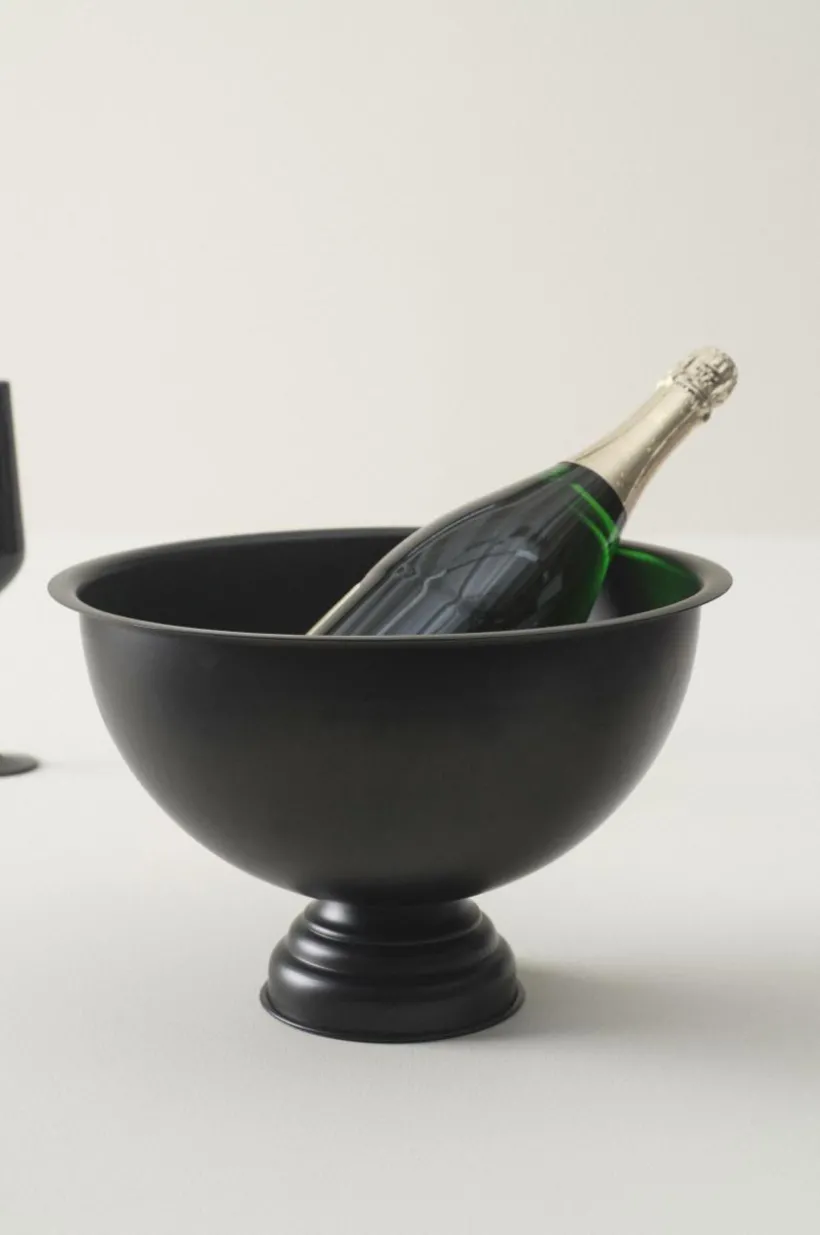 Vinkylare av järn med mattsvart yta. Den mjuka formen i kombination med det tunna godset ger en exklusiv känsla. Fylld med is kyler denna snygga vinkylare mer än en flaska.