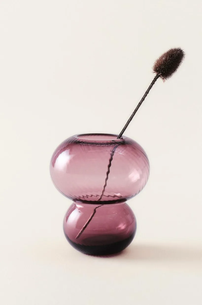 Handgjord glasvas av färgat glas. Blommor på matbordet gör måltiden lite festligare. Det fina hantverket gör att varje vas är unik, färgen kan variera.