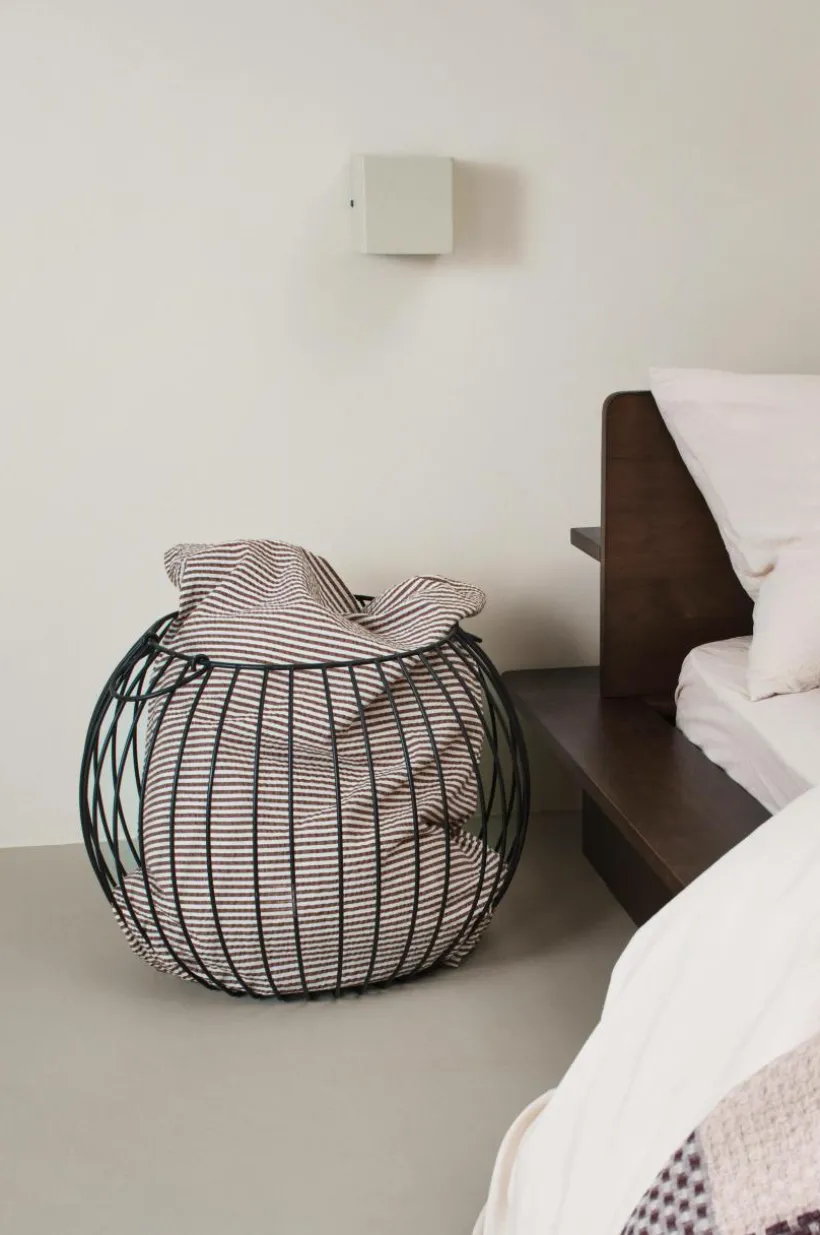 Handgjord förvaringskorg av järn med fin ytfinish. Trådkorgen har en fin rund form och två handtag och ger möjlighet till dekorativ förvaring, kanske med vackra sjalar i hallen eller plädar i vardagsrummet? Hantverket gör varje trådkorg unik.