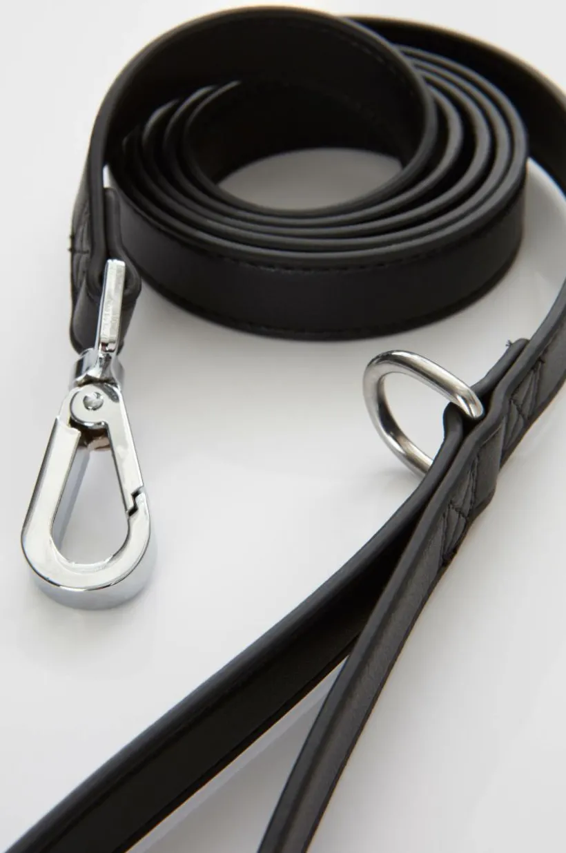 Koppel till hund eller katt. Kopplet är i läderimitation av polyuretan med mjukt foder av microfiber. Haken och ringen vid handöglan är av silverfärgad zinklegering. På ringen kan du till exempel fästa en hållare för bajspåsar.