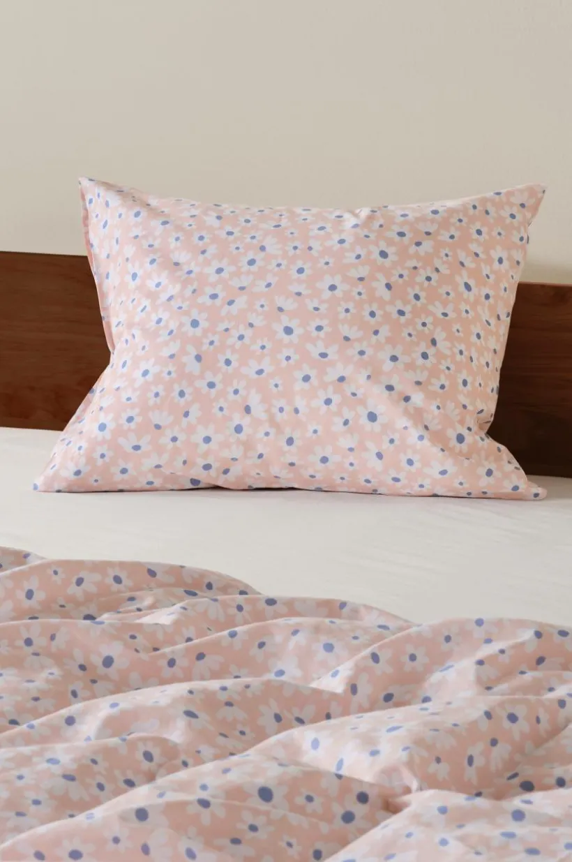 Småblommigt örngott i ekologisk bomull. Tyget är behagligt med mjukt tryck, bomull är svalt och skönt mot huden. Fantasiblommorna påminner om vita små tusenstjärnor på en varm och mysig bottenfärg. Trådtäthet på 144 tc. (Trådtätheten talar om antalet trådar, thread counts, per kvadrattum i ett tyg. Ju högre trådtäthet desto högre kvalité.)