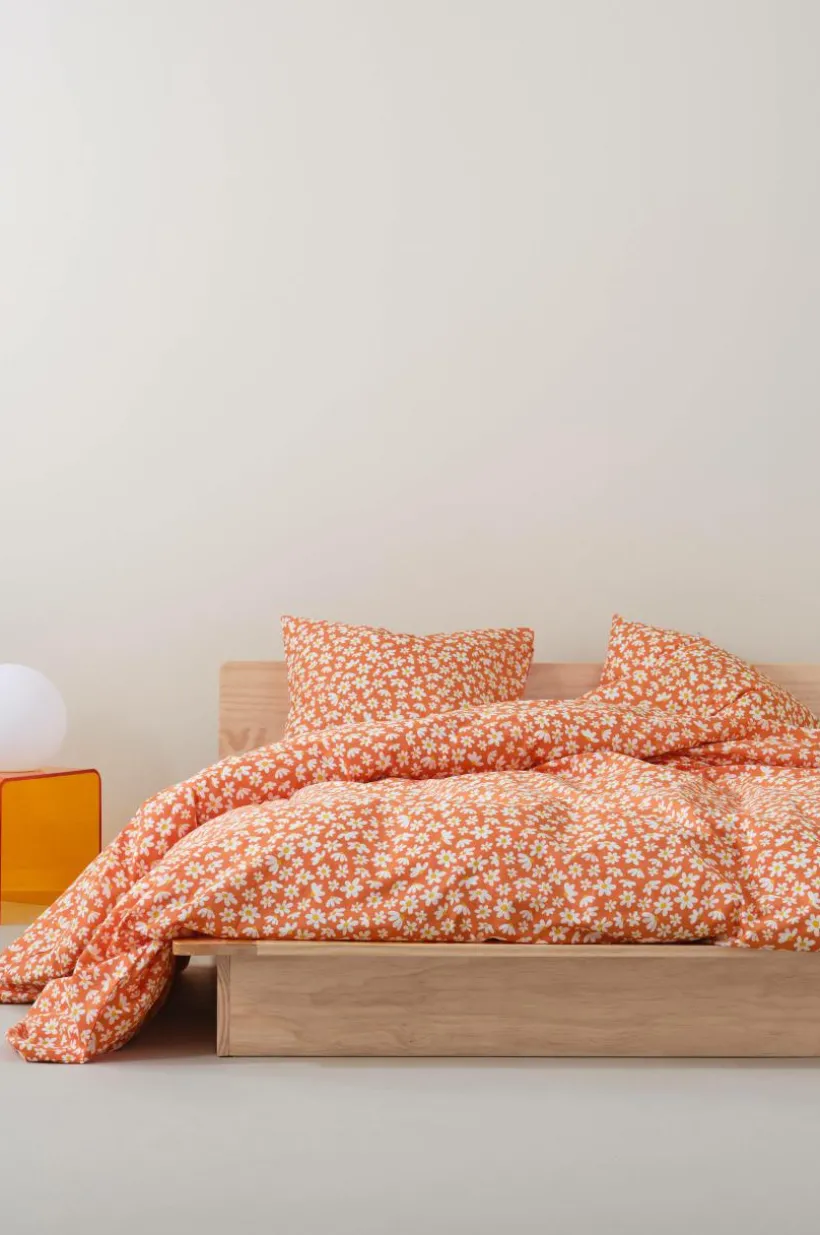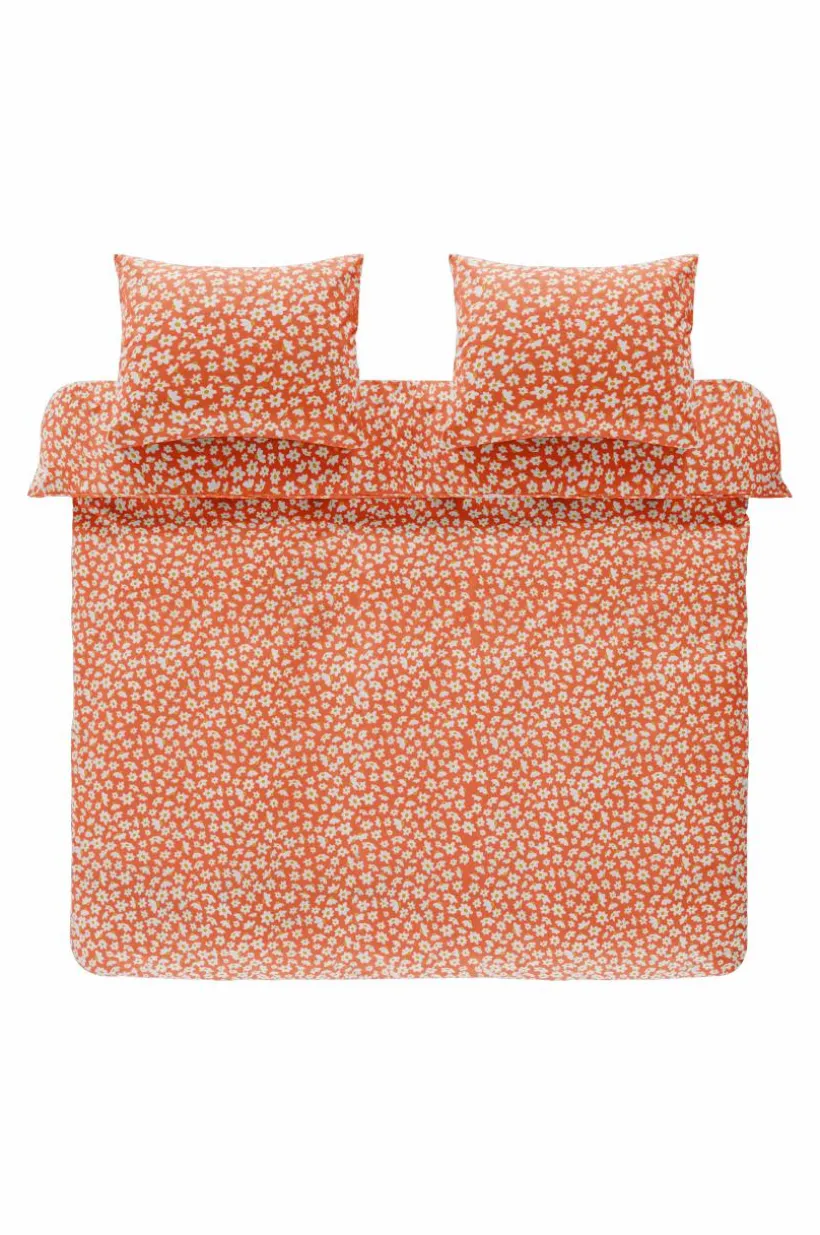Småblommigt påslakanset med ett extrabrett påslakan och två örngott i ekologisk bomull. Tyget är behagligt med mjukt tryck, bomull är svalt och skönt mot huden. Fantasiblommorna påminner om vita små tusenstjärnor på en varm och mysig bottenfärg. Öppning i övre hörnen på påslakanet, som underlättar att trä påslakanet över täcket. Trådtäthet på 144 tc. (Trådtätheten talar om antalet trådar, thread counts, per kvadrattum i ett tyg. Ju högre trådtäthet desto högre kvalité.)