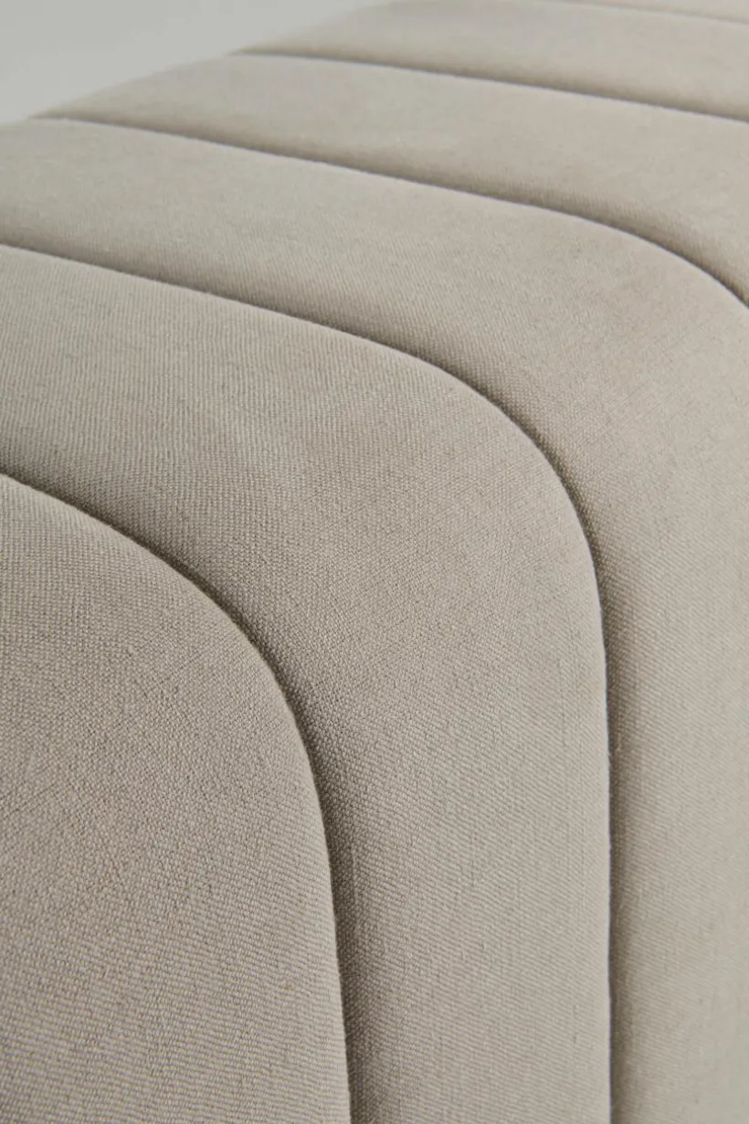 Sittbänk med stomme av furu och plywood. Klädseln är i mjuk linne- och bomullsblandning med lodräta quiltsömmar. DERBY passar perfekt när du behöver en sittplats i hallen eller som en stilren sittplats vid fotändan av sängen. Bänken blir en fin inredningsdetalj i vilket rum den än befinner sig i.