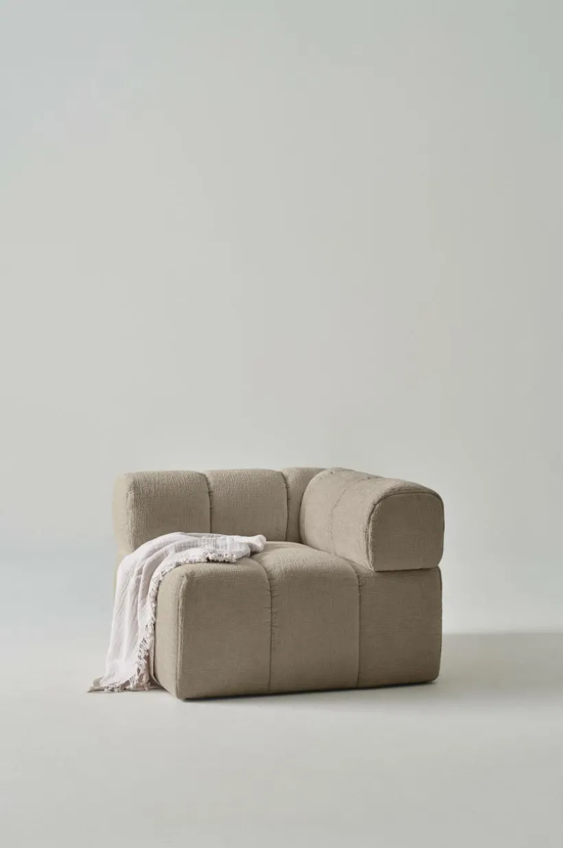 Lyft ditt vardagsrum med den eleganta DERMY soffmodulen. Denna mångsidiga möbel har rundade hörn som ger en touch av modern elegans till ditt rum. Som en stolt medlem av DERMY-familjen kan den integreras sömlöst med andra moduler eller stå för sig själv som en elegant fåtölj. Perfekt för dem som uppskattar modern design i sina hem.