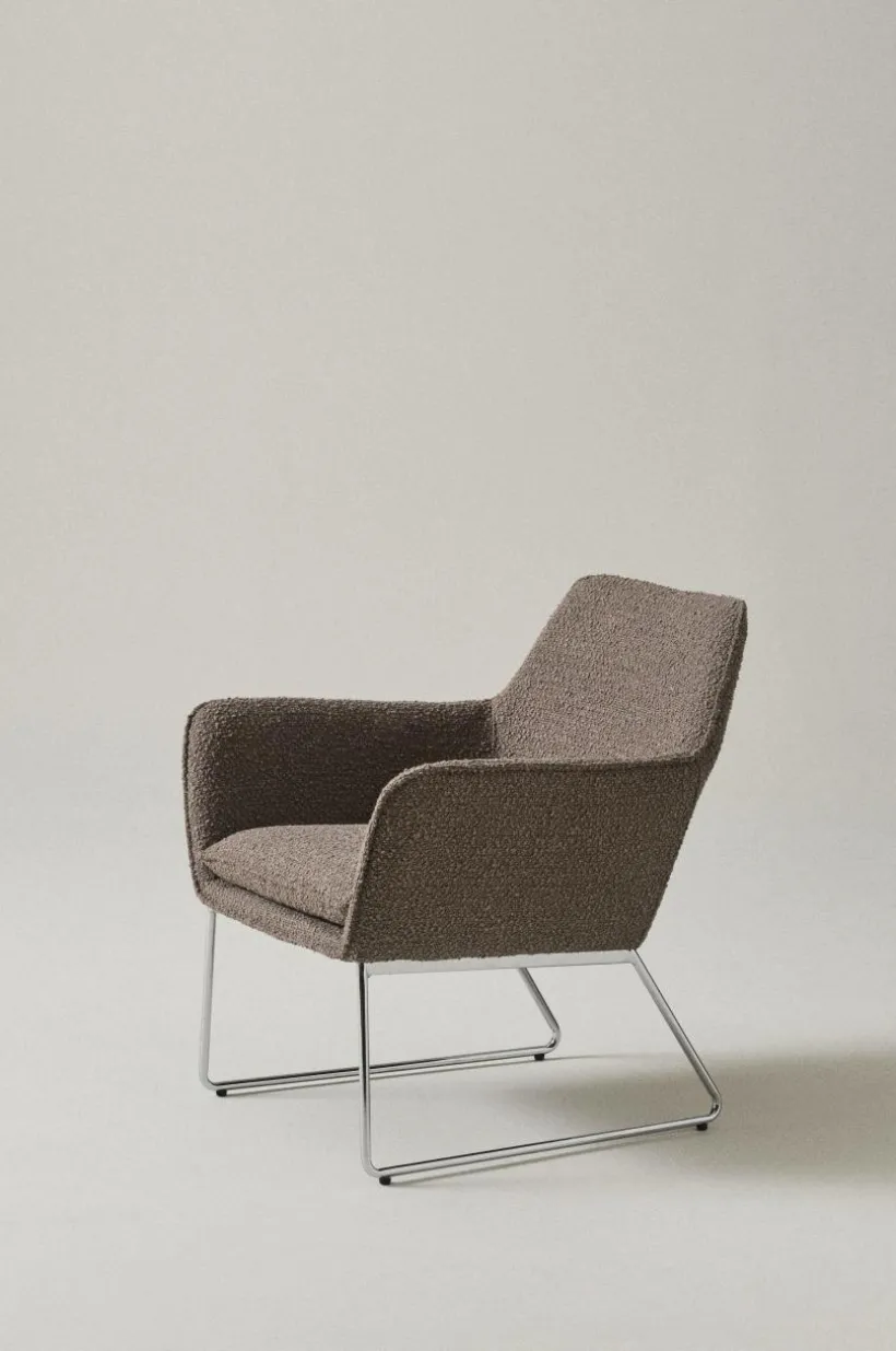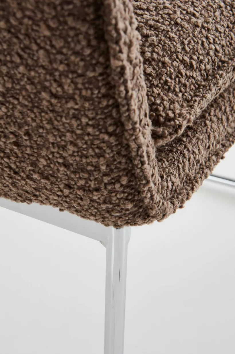 Enfärgad fåtölj som är klädd i ett läckert bouclétyg och har kromade metallben. Bekväm, karaktärsstark och lätt är ord som beskriver ELLNE. Fåtöljen är bekväm tack vare sin sittvinkel, mjukt vadderad rygg och den mjuka dynan i bouclétyg. Bouclétyget är tåligt med slitstyrka på 40000 Martindale. Viss montering krävs. Monteringsanvisningar medföljer.