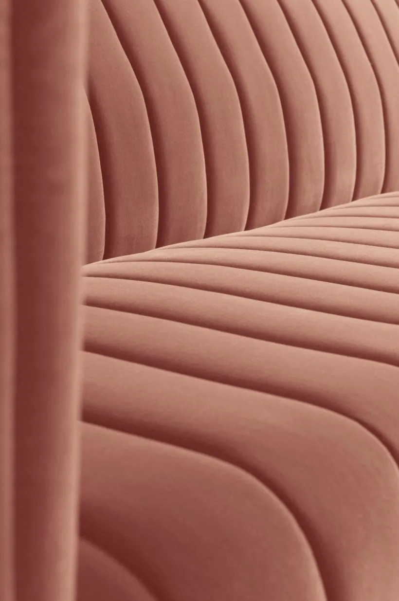 FAYETTE 3-sits soffa är en bekväm sammetssoffa med retrokänsla som uppstår i kombinationen av sammet och den quiltade randningen på ryggstöd och dyna. Den fasta stoppningen ger bekväm sittkomfort. Soffan får en smäcker känsla med de nätta, svarta metallbenen. FAYETTE 3-sits soffa har en stabil stomme av furuträ och plywood med god sittkomfort tack vare sin fantastiska uppbyggnad av kallskum, zickzackfjädring, resårband samt den sköna polyesterstoppningen.
