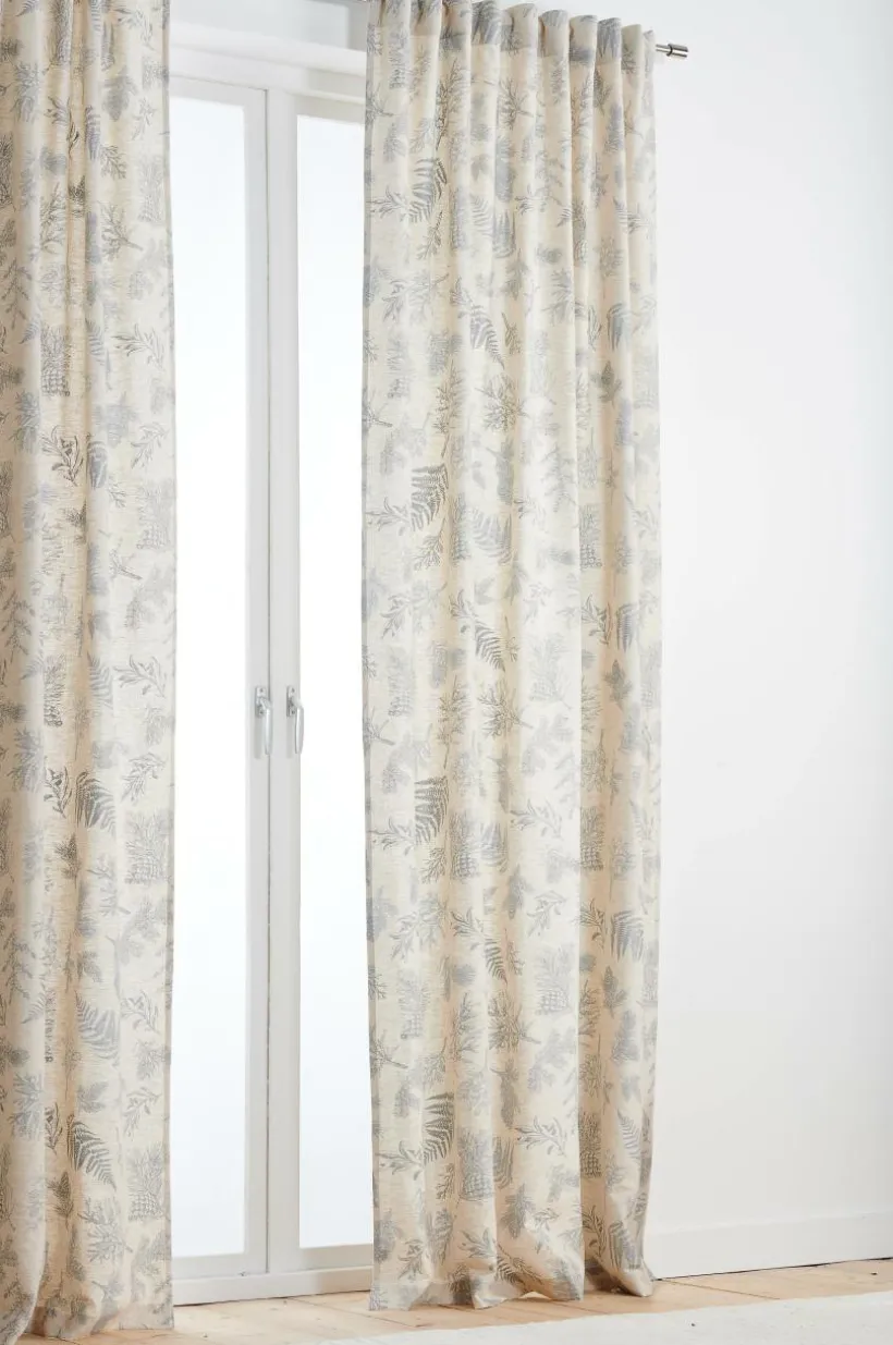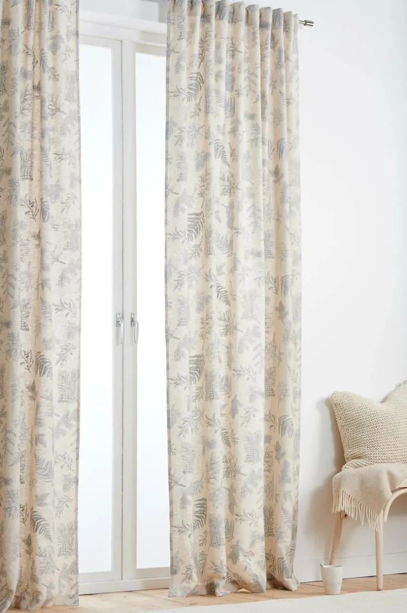 2-pack gardinlängder av mjuk bomullsblandning med tryckt bladmönster och påsytt multifunktionsband. Gardinen kan hängas upp med fingerkrokar, kanal samt dold hälla.