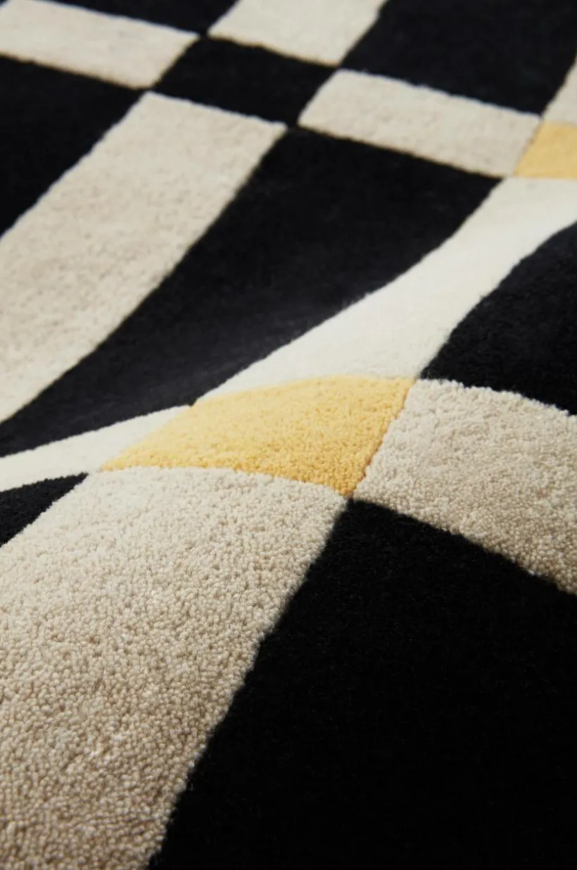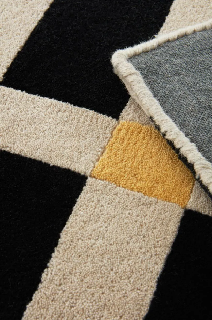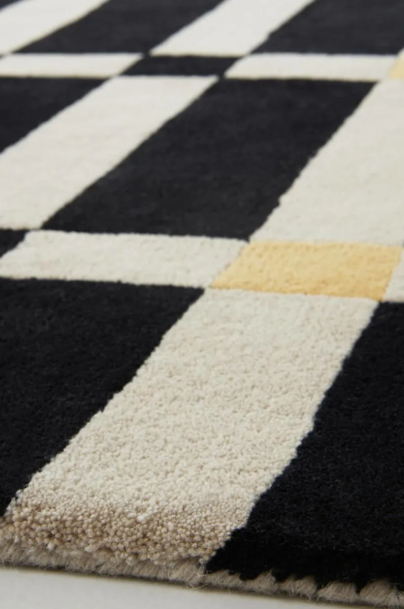 Lyxig ullmatta som ger värme och komfort till ditt vardagsrum eller sovrum. Denna stora, handtuftade matta har en tätt vävd lugg av lyxig ull på en baksida av bomull. Det kvadratiska mönstret med distinkta färger ger en touch av djup och elegans, perfekt för att grunda din hemdesign med stil och värme.
