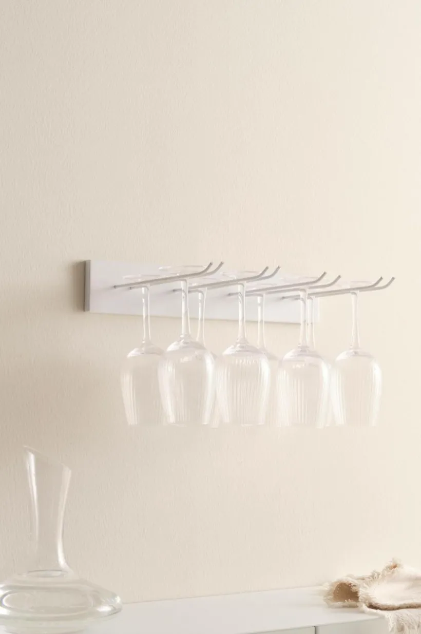 Vinglashållare i järn. Snygg på väggen med dina favoritglas hängandes, praktiskt och dekorativt. Denna modell har fyra hängare för glas på fot. Obs! Glas medföljer ej. Köps separat.