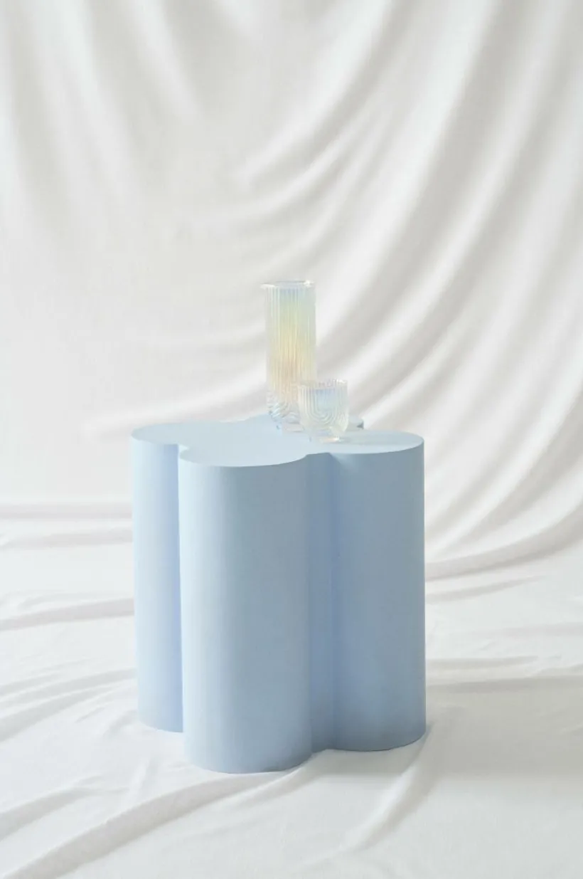 Sidobord av järn med härlig form som för tanken till ett fyrklöver. Bordet är helt enfärgat och ytan har pulverlackerats med matt finish. SIdobordet skapar en lättsam och lekfull känsla i rummet.