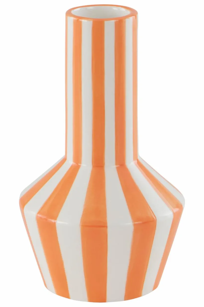 GJÖRDIS, en handgjord vas i dolomitporslin, har en elegant form med effektfulla ränder. Perfekt för att lyfta skönheten hos färska blommor på middagsbordet.
