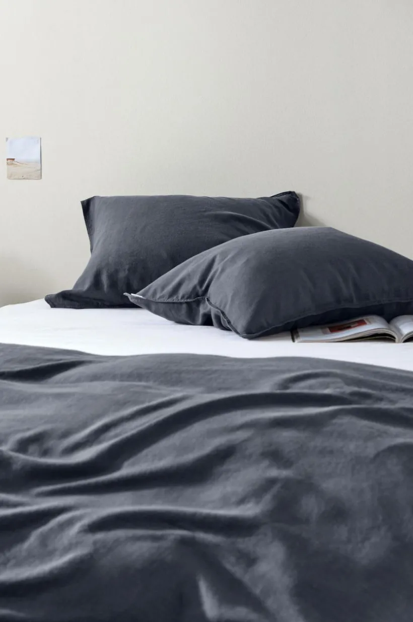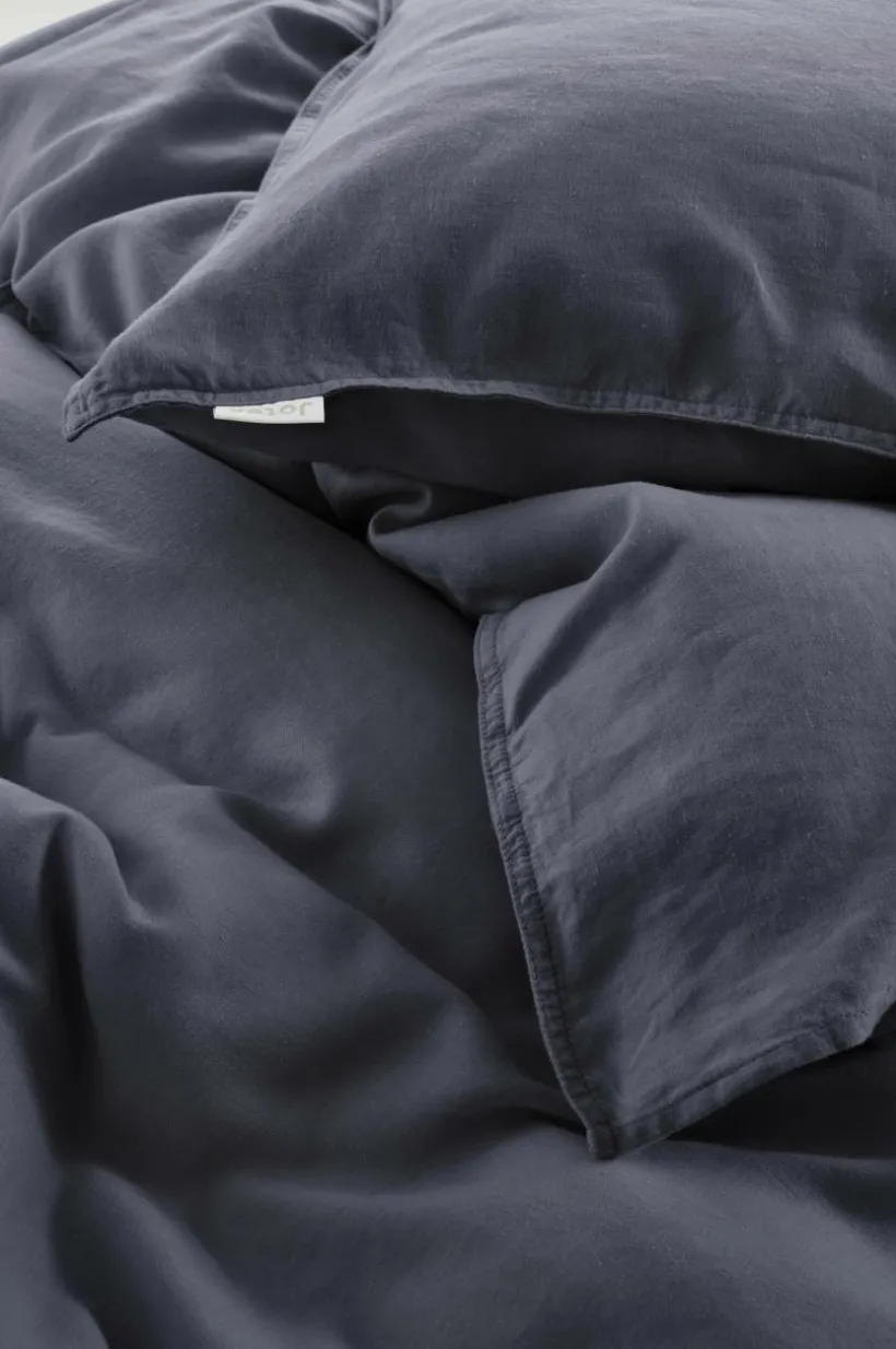 Påslakanset i två delar, ett påslakan och ett örngott, i behaglig, tvättad kvalité. Hampa och lyocell har kombinerats till ett tyg med matt yta och skön linnekänsla. HANNAH är enfärgat i snygga, lite dämpade nyanser. Dubbelsöm runtom på både örngott och påslakan. Påslakanet har förslutning med knappar. Öppning i övre hörnen på påslakanet, som underlättar att trä påslakanet över täcket. Tygets gramvikt 130 g/m².
