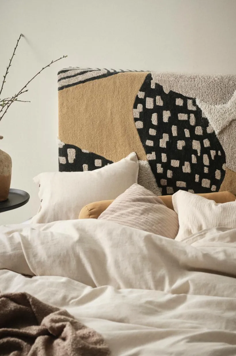 IBEN är en sänggavel klädd med handtuftad matta, som har ett fantastiskt mönster skapat av olika garnfärg, vävteknik och lugghöjd. Stommen är av plywood. Klädseln är ej avtagbar. Den mattklädda sänggaveln är behaglig att sitta och luta sig mot samtidigt som den skyddar väggen bakom sängen som lätt kan bli sliten och ful. Sänggaveln placeras mot väggen bakom din säng eller resårmadrass.