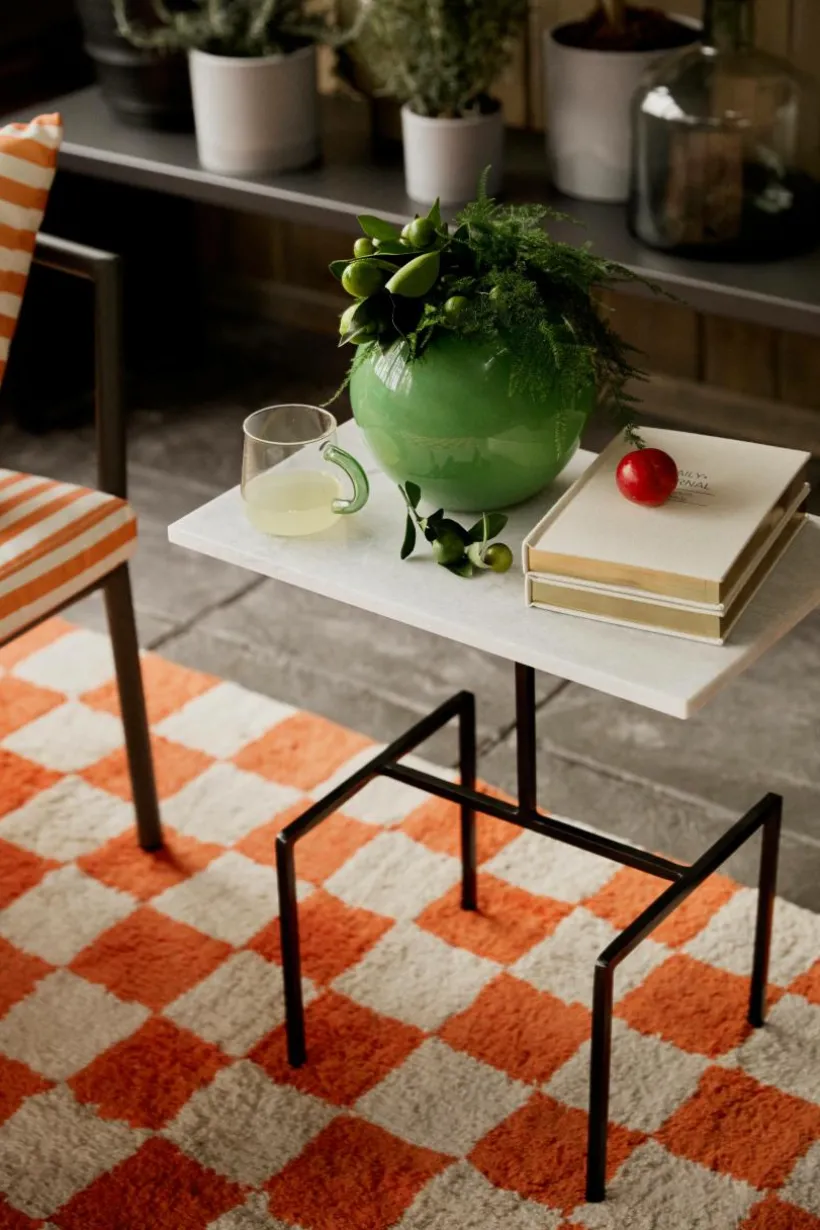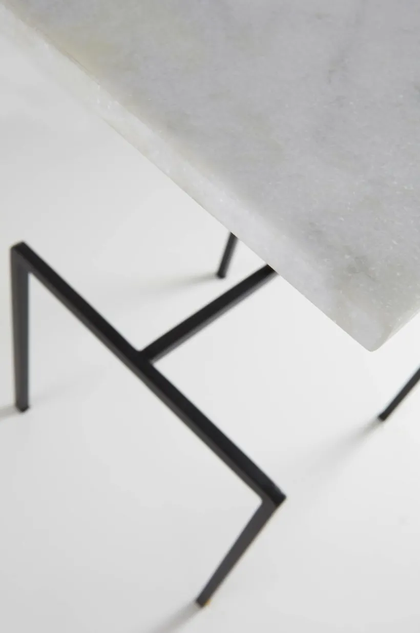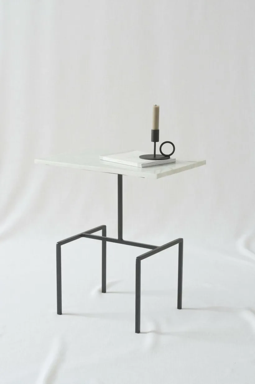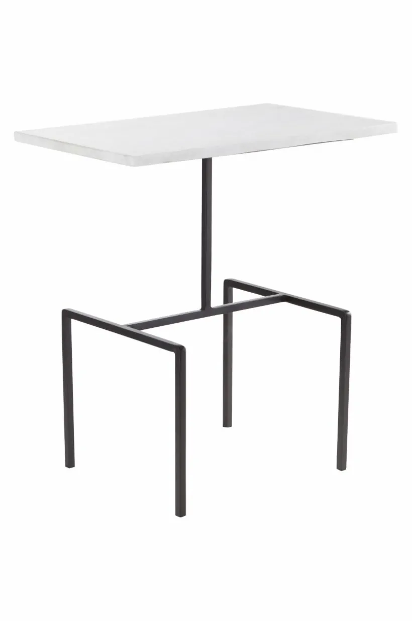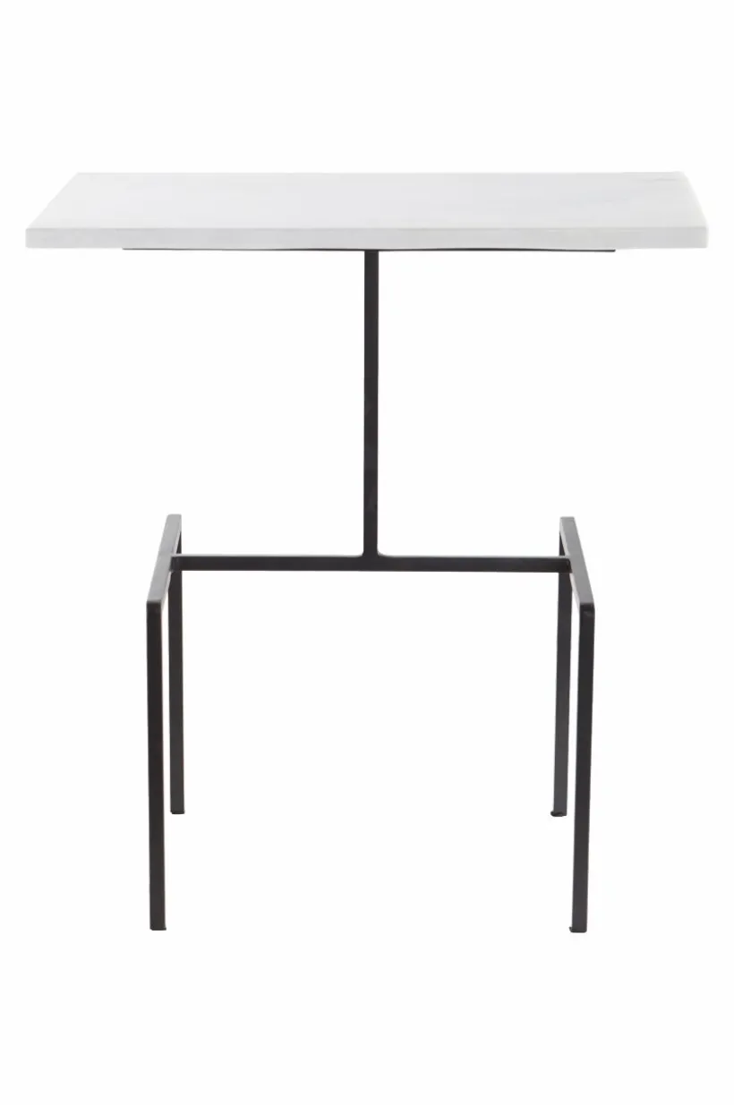 Sidobord med bordsskiva av marmor och underrede av järn med mattlackerad yta. Stommen är av fyrkantsprofil och benen är snyggt formade. Marmor är en natursten och mönstret varierar alltid lite beroende på bergartens sammansättning, vilket gör varje möbel unik. Ett snyggt och stilistiskt bord som passar in i många olika stilar.