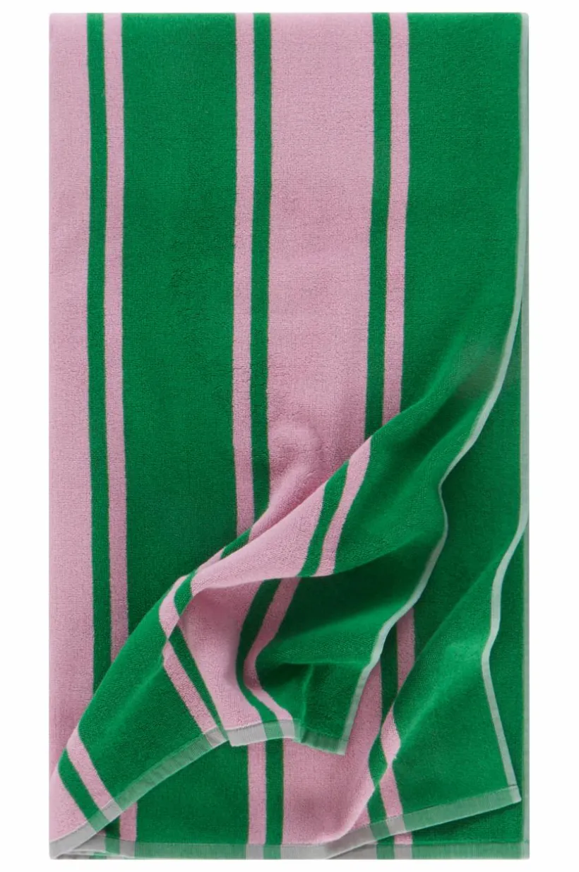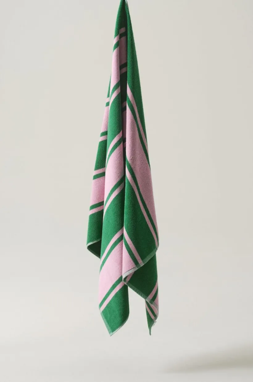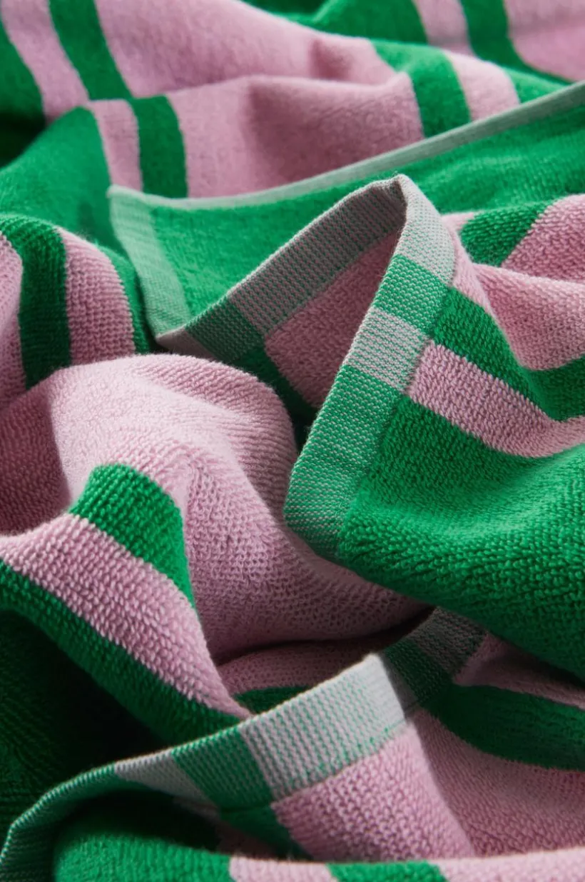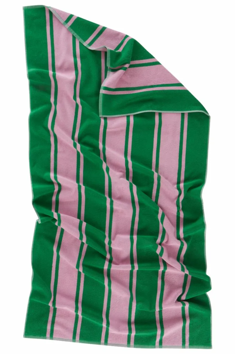 Upptäck ITALY, den ultimata strandhandduken tillverkad av mjuk bomullsfrotté. Den dubbla garnvävningen ger inte bara ett unikt omvänt mönster på båda sidor utan också oöverträffad komfort för dina stranddagar. Med garnfärgade ränder kombinerar denna handduk modern design med funktionalitet. Perfekt för dig som älskar trendiga, fräscha accenter i hemmet och på stranden.