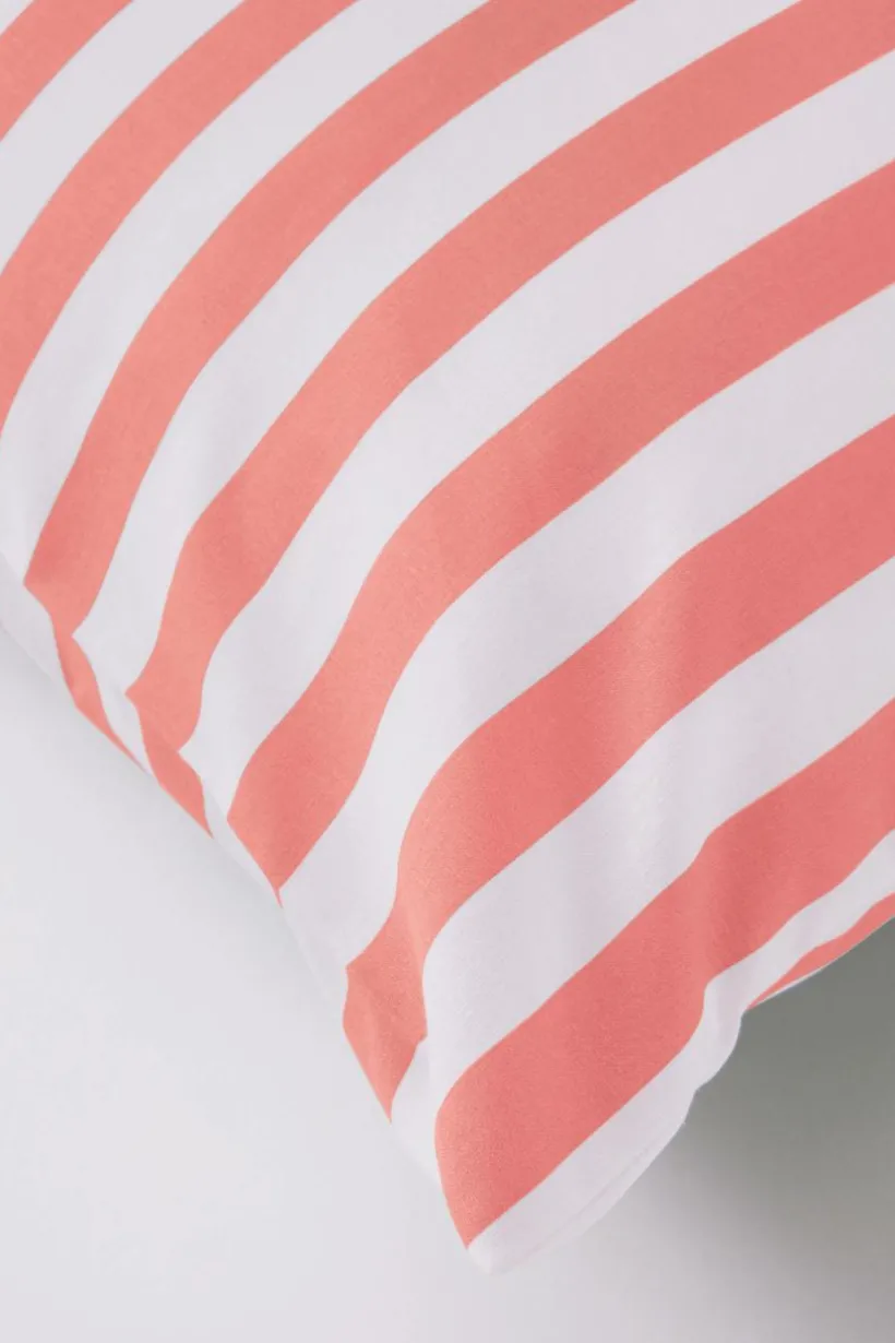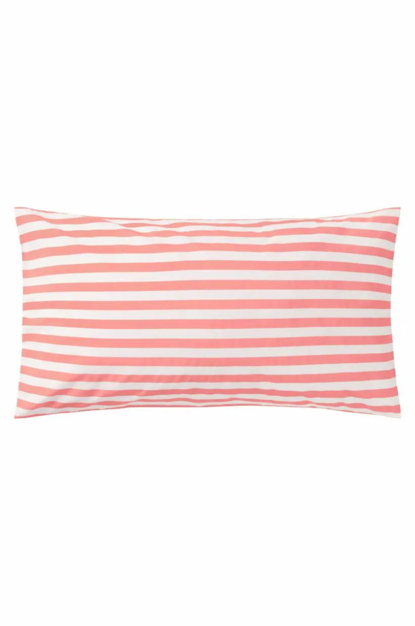1-pack örngott av av randig bomull. Den tvärgående randningen är tryckt i fräscha, somriga färger och på båda sidor av örngottet. Bomull är en mjuk och behaglig kvalité som känns sval mot huden. Trådtäthet på 144 tc. (Trådtätheten talar om antalet trådar, thread counts, per kvadrattum i ett tyg. Ju högre trådtäthet desto högre kvalité. Med undantag för linne som ofta vävs glesare för att få den rätta känslan.)