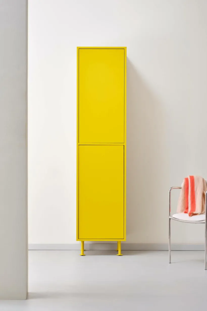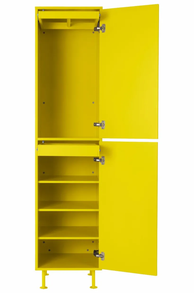 KIPP garderob kombinerar elegant design med praktisk funktion, perfekt för moderna hem. Med hyllplan i MDF och robusta järnben passar denna eleganta förvaringslösning perfekt i sovrum eller hall. KIPP har gott om dold förvaring och ingår i en serie som ger en sammanhängande look i hela ditt rum. Förhöj ditt hem med KIPP:s blandning av modern estetik och mångsidig användbarhet.