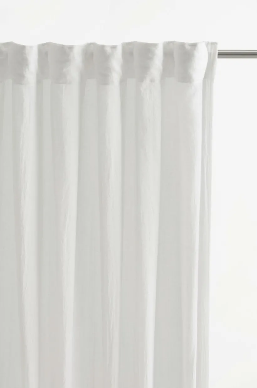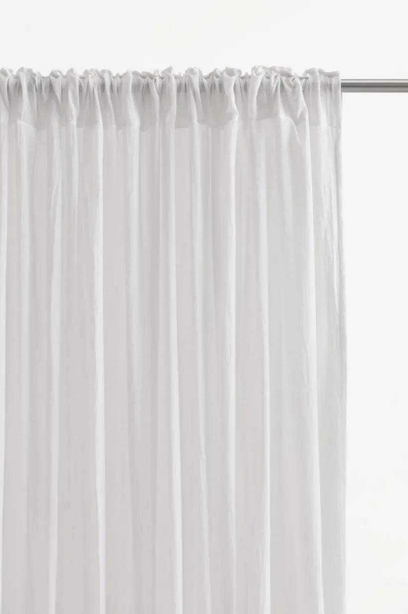En extra bred gardinlängd i skir och luftig kvalité av polyester/bomull som faller lätt. Med påsytt multifunktionsband. Gardinen kan hängas upp med fingerkrokar, kanal samt dold hälla.
