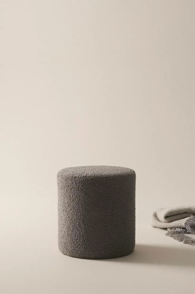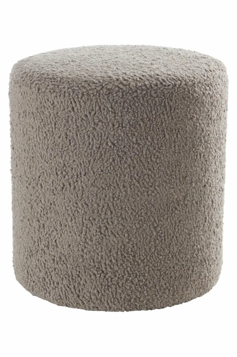 Rund sittpuff med fast fårskinnslik teddyklädsel av polyester. Puffen har träram av furu och plywood i stommen kombinerat med kallskum som gör den mjuk. Den härliga sittpuffen kan du använda som fotpall likväl som du kan sitta på den. Det tåliga teddytyget har slitstyrka på 100000 Martindale.