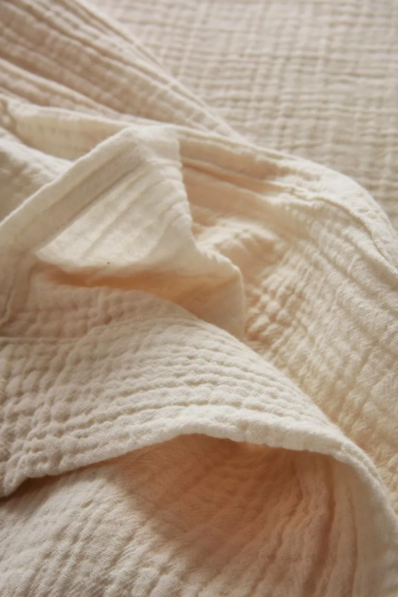 Enfärgat överkast för enkelsäng. LILIA är i härlig, ekologisk bomullsmuslin. Muslin är ett mjukt tyg, vävt med bubblig effekt, vilket gör tyget mjukt och extra lättskött. Du behöver inte stryka eller mangla. Kuddfodral medföljer ej, köps separat.