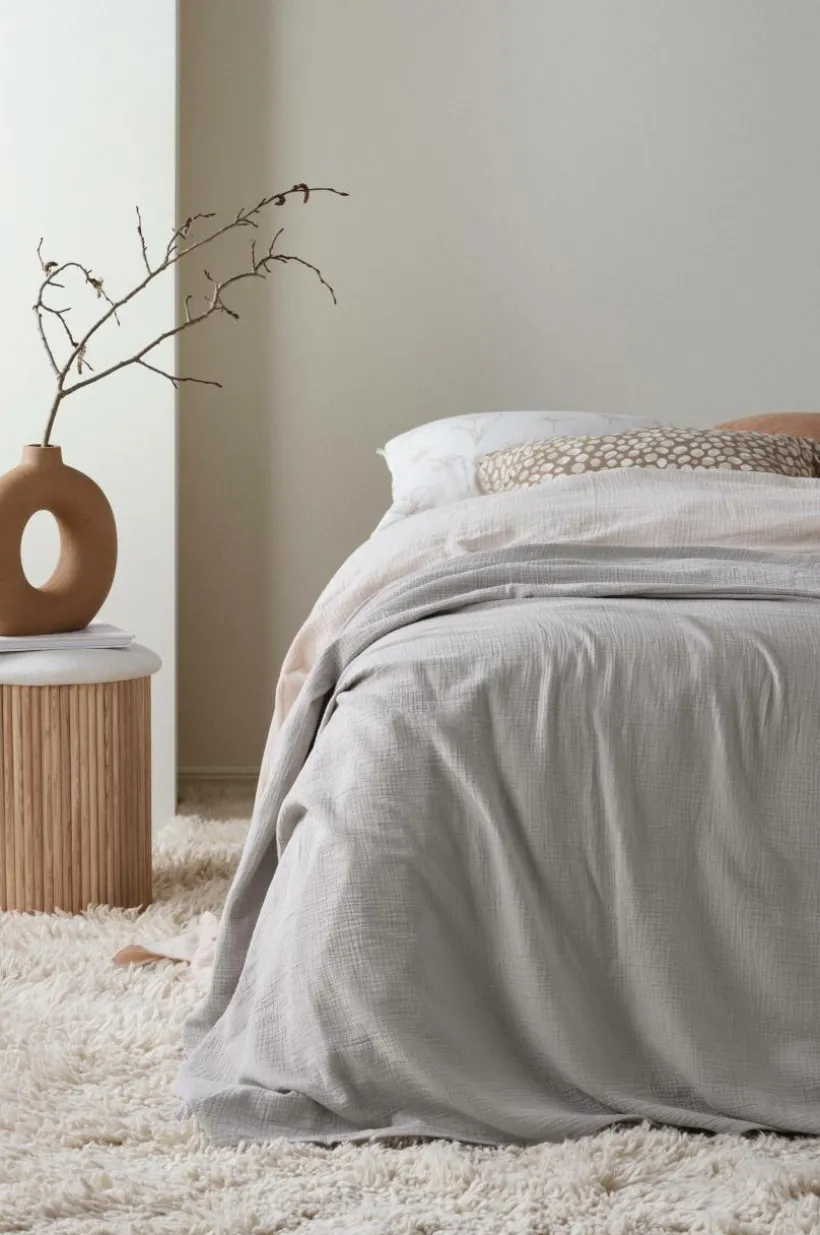 Enfärgat överkast för enkelsäng. LILIA är i härlig, ekologisk bomullsmuslin. Muslin är ett mjukt tyg, vävt med bubblig effekt, vilket gör tyget mjukt och extra lättskött. Du behöver inte stryka eller mangla. Kuddfodral medföljer ej, köps separat.